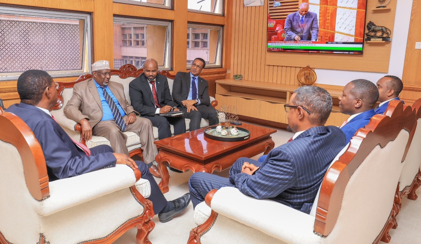 National Assembly speaker Moses Wetang'ula with Somali Speaker Sheikh Nur and other officials during a meeting on November 18,2025/NASomalia’s Federal Parliament Speaker, Sheikh Aden Mohamed Nur, made a high-stakes visit to Nairobi Tuesday to meet his Kenyan counterpart Moses Wetang’ula amid a raging legal battle over Somalia’s nominees to the East African Legislative Assembly (EALA).