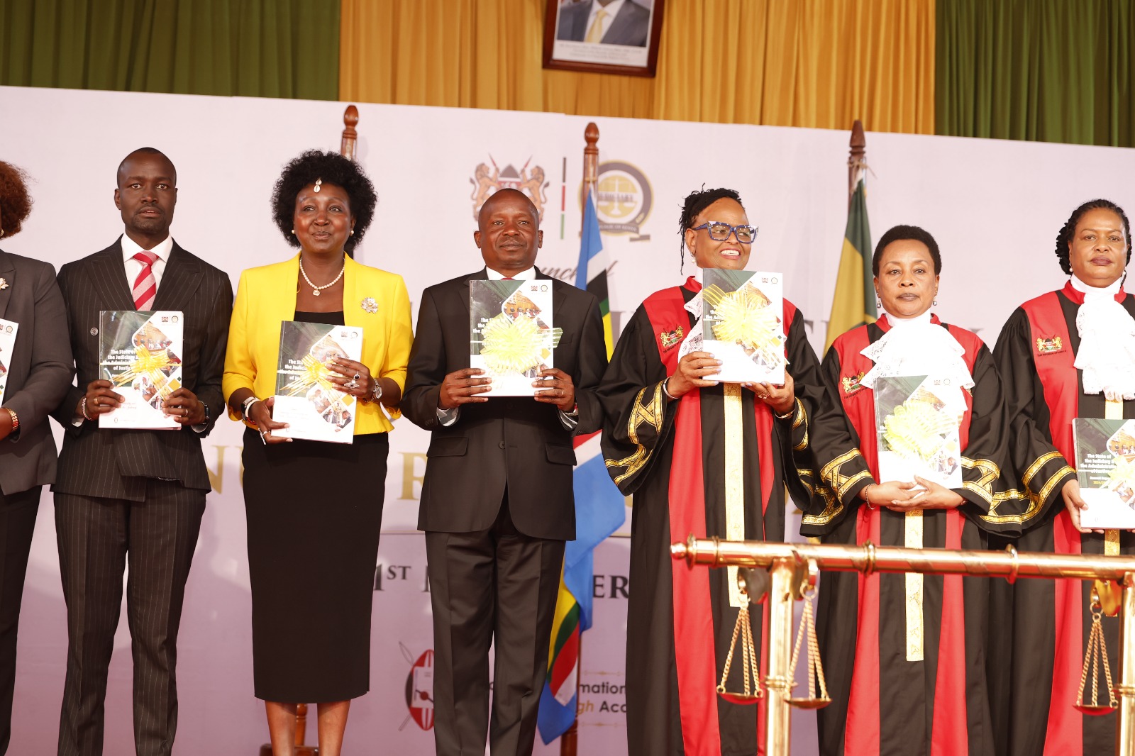 Chief Justice Martha Koome, DP Kithure Kindiki, National Assembly deputy speaker Gladys Boss with the State of the Judiciary and the Administration of Justice Report (SOJAR) 2024/2025, November 21, 2025.
