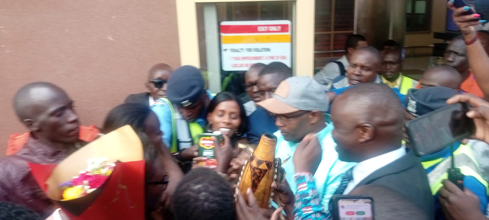 He landed at JKIA at 3pm to a grand reception by hundreds of jubilant constituents who expressed joy at welcoming him home.