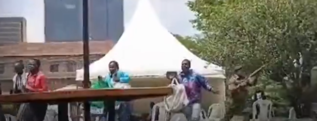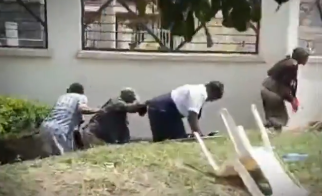 Protesters scamper for safety as police fire shots at Kenya Railways Pension Scheme (KRPS) offices/SCREENGRABConfusion reigned as some protesters attempted to hide in drainage channels and behind concrete barriers within the compound.