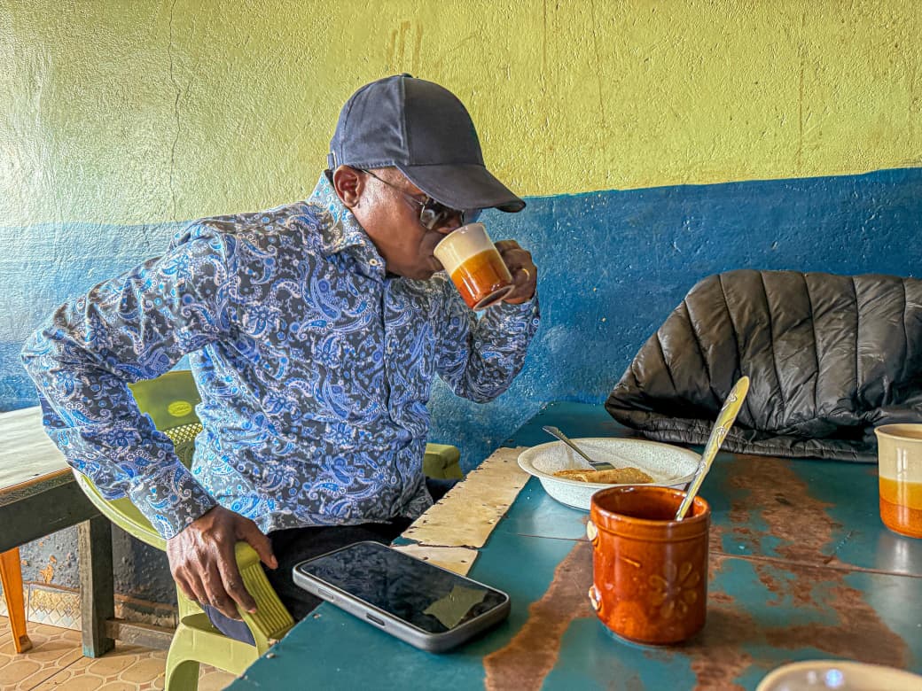 Deputy President Kithure Kindiki sips tea at a local hotel in Mbeere North constituency on November 25, 2025. /DPCSOn Monday, Kindiki displayed confidence in a peaceful post-election outcome, urging residents to exercise their democratic rights calmly come Thursday, November 27.