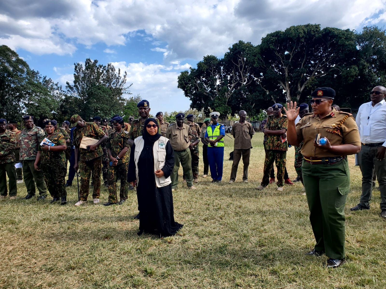 IEBC vice chairperson Fahima Araphat Abdallah and the security personnel who have been deployed to the polling stations for Ugunja by-election, November 26, 2025. /IEBC