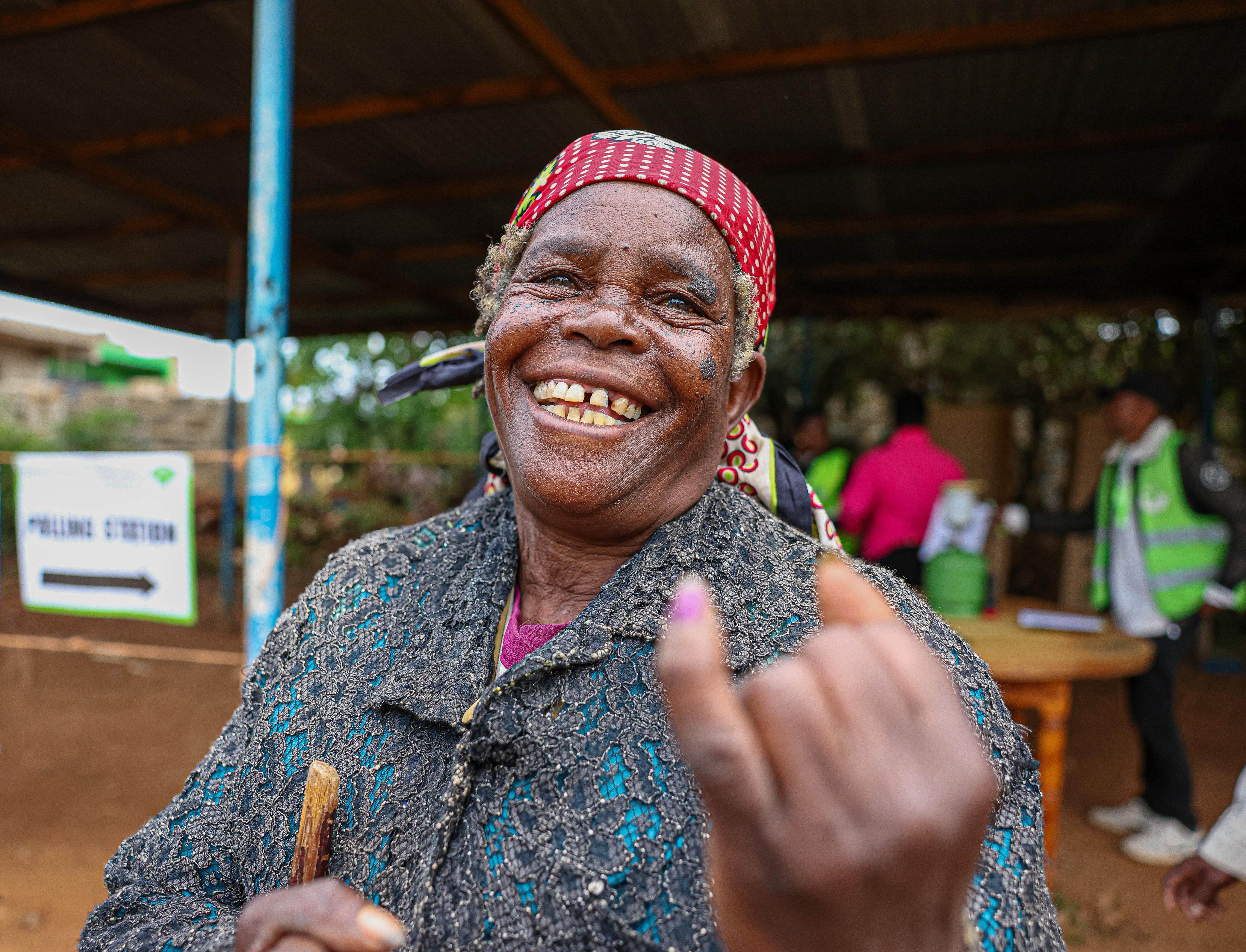 A voter dipped a finger in indelible ink after casting her vote at Siakago social hall polling center, Mbeere North/HANDOUT