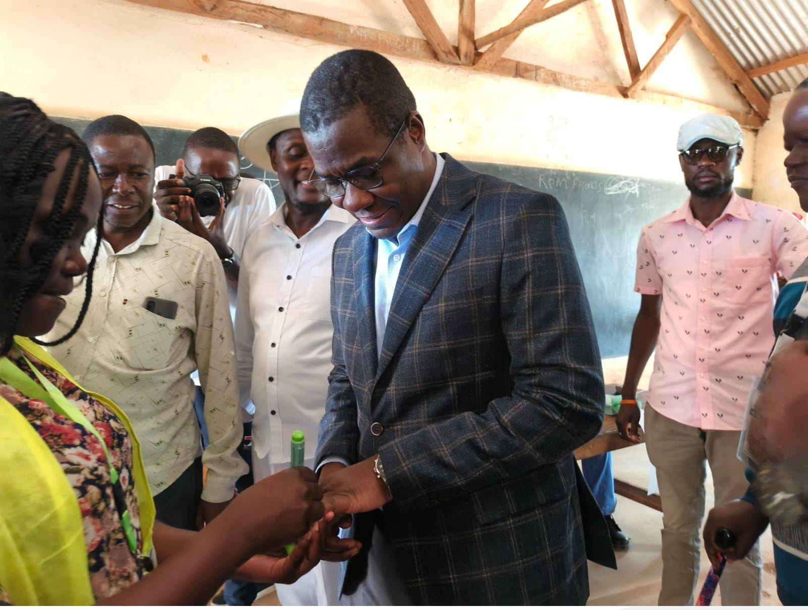 CS Wandayi as he prepares to cast his vote at Luanda Primary School polling center for the Ugunja by elections./FAITH MATETE