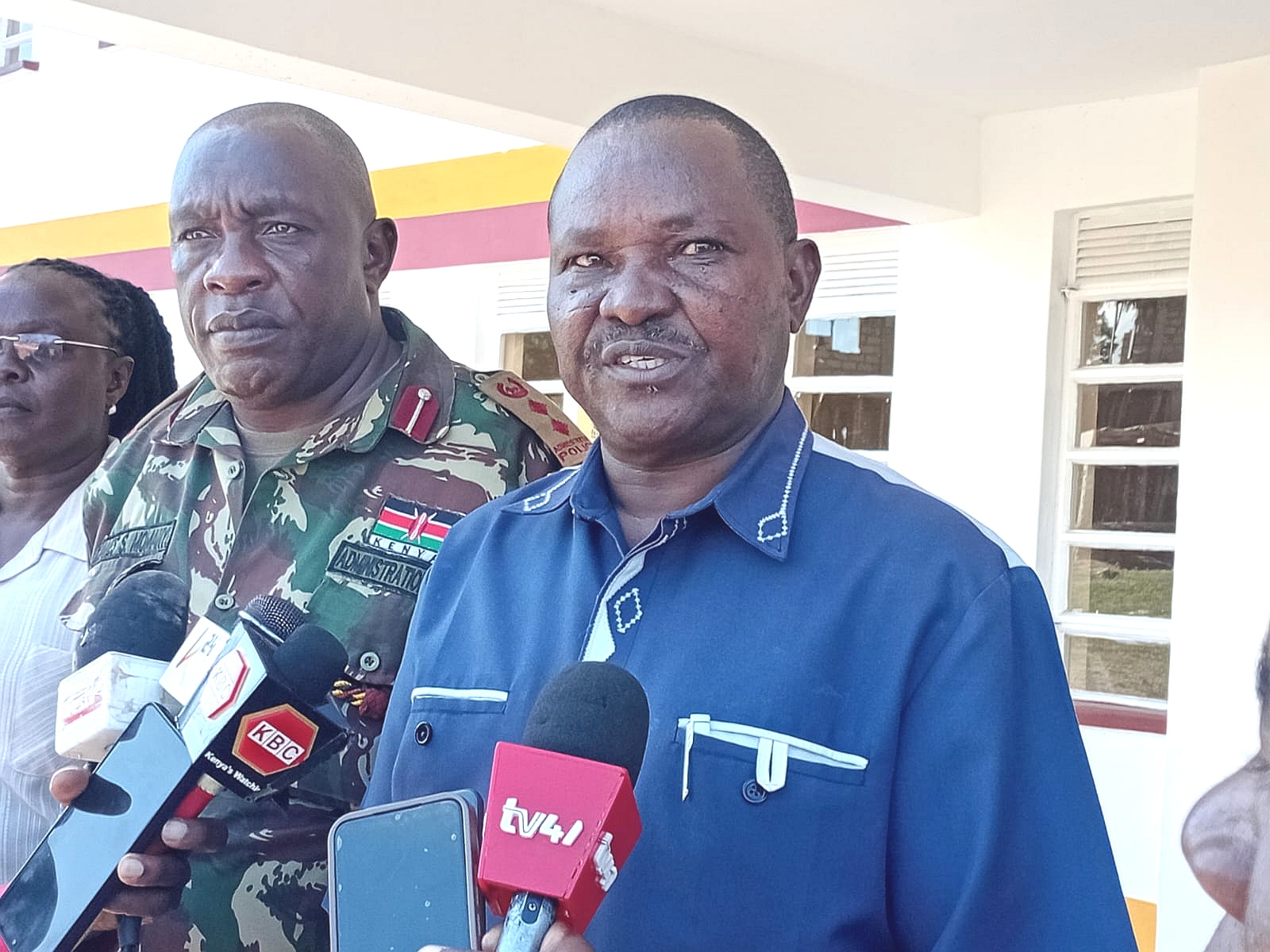Kakamega county commissioner Onesmas Kyatha addressing the press at Malava KMTC on Thursday /IMAGE /HILTON OTENYO