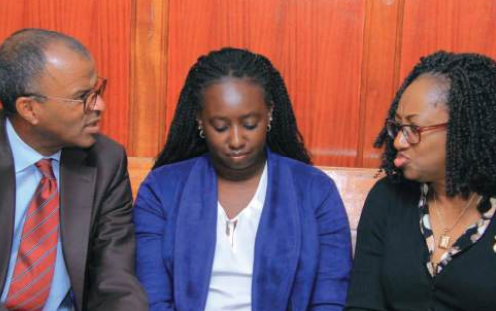 Maxine Wahome in court with her lawyer Philip Murgor and mother Beverly on Thursday /EZEKIEL AMINGA
