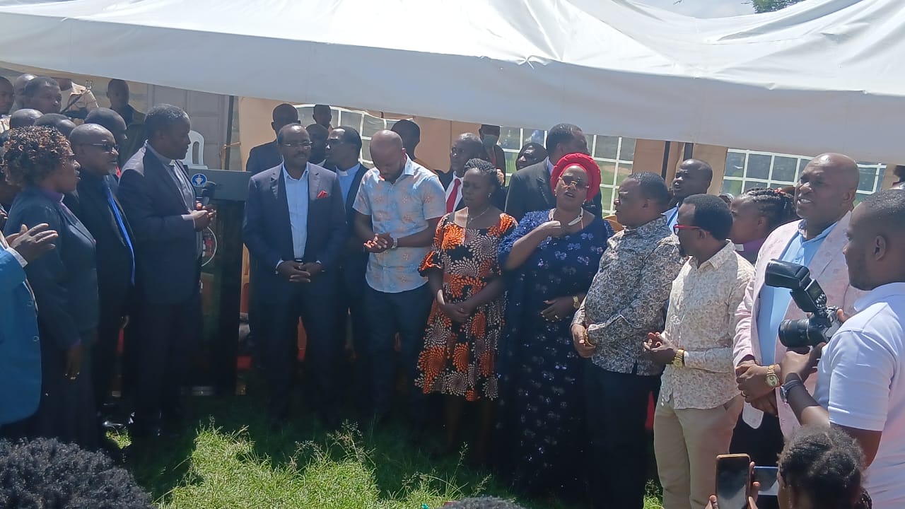 Wiper Patriotic Front leader Kalonzo Musyoka, Reverend Nichodemus Masaka, Mumbuni North MCA elect Anthony Kisoi, Governor Wavinya Ndeti and former Machakos Town MP Victor Munyaka join faithful in a gospel gig during Kisoi's thanksgiving prayers at AIC Mukuni church in Machakos county on November 30, 2025./GEORGE OWITI
