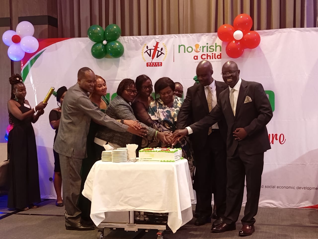 Cake cutting session by Hesed Africa stakeholders during the launch of 'nourish a child' campaign in Westlands, Nairobi on November 29, 2025/JAMES GICHIGI