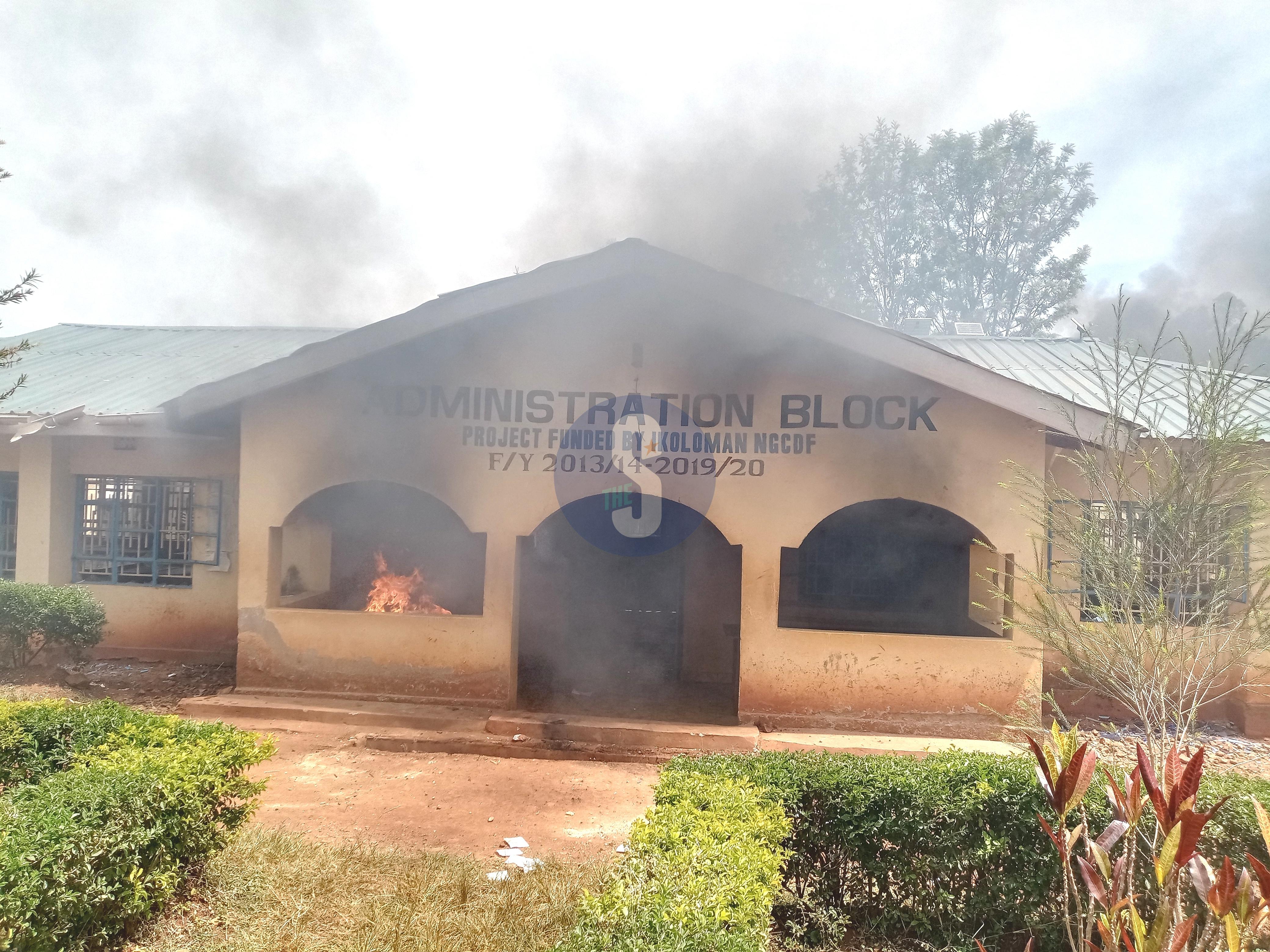 The Imusali Secondary School administration block that was set ablaze during protests against gold mining on Thursday, December 4, 2025 /IMAGE /HILTON OTENYO.The rioters tore down tents, destroyed hundreds of plastic chairs, burned the public address system, and stole metal bars. They also broke into the administration block of the neighbouring Imusali Secondary School, vandalising property and setting parts of it on fire.