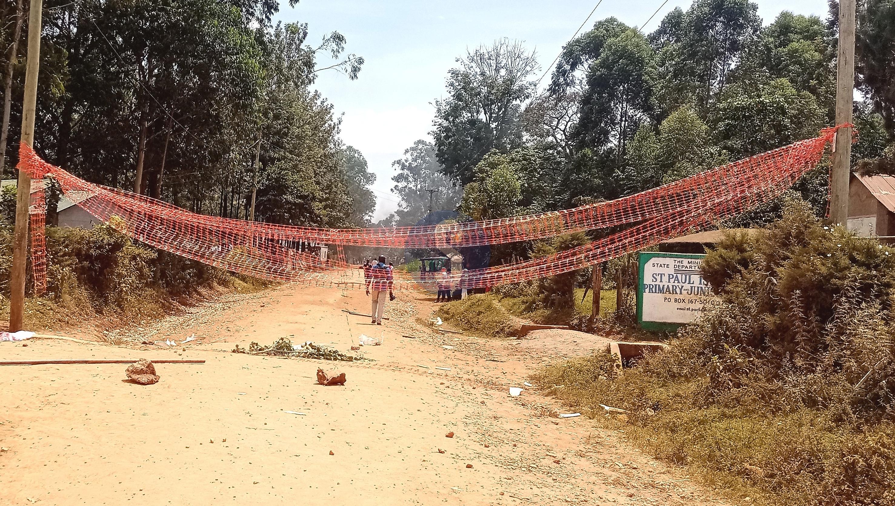 A barricaded road that passes by Imusali secondary school in Ikolomani /IMAGE /HILTON OTENYOThe major gold mining proposal in Kakamega South recently met resistance from local communities, who said that they are concerned about possible environmental, cultural, and social impacts if the project proceeds.