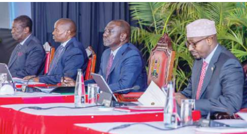 Prime CS Mudalia Mudavadi, DP Kithure Kindiki, President William Ruto and Council of Governors chairperson Ahmed Abdullahi during the National and County Governments Coordinating Summit at State House, Nairobi /PCS