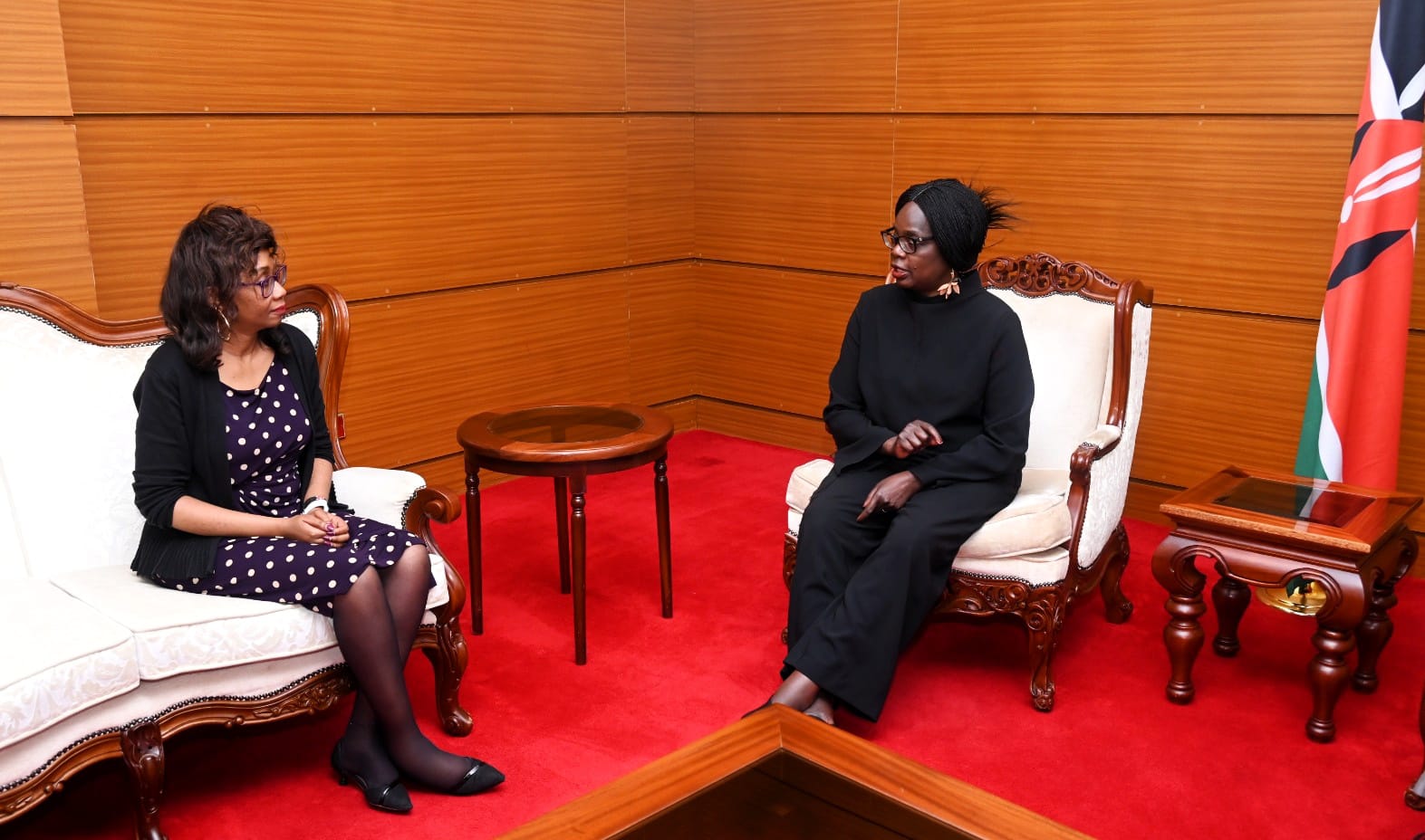 Judge Professor Phoebe Okowa holds talks with an official from the Ministry of Foreign and Diaspora Affairs on her arrival from The Hague, December 12, 2025. /ICJ
