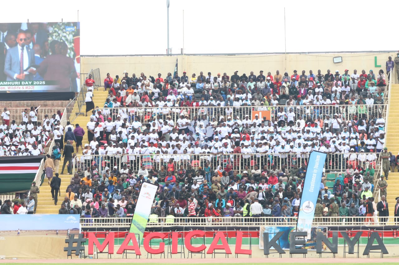 Thousands of Kenyans flock Nyayo Stadium during the 62nd Jamuhuri Day celebrations on December 12, 2025/LEAH MUKANGAI