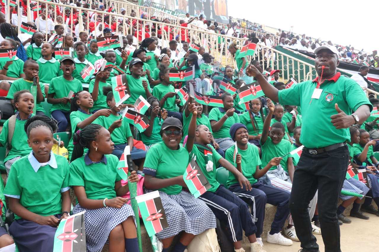 Students celebrate during the 62nd Jamuhuri day commemoration at Nyayo stadium, Nairobi, on December 12, 2025/LEAH MUKANGAI