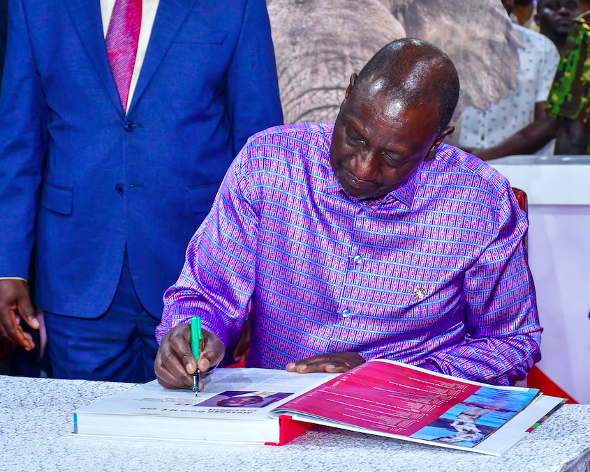 President William Ruto appends his signature on the National Wildlife Census 2025 report at KICC on December 11.