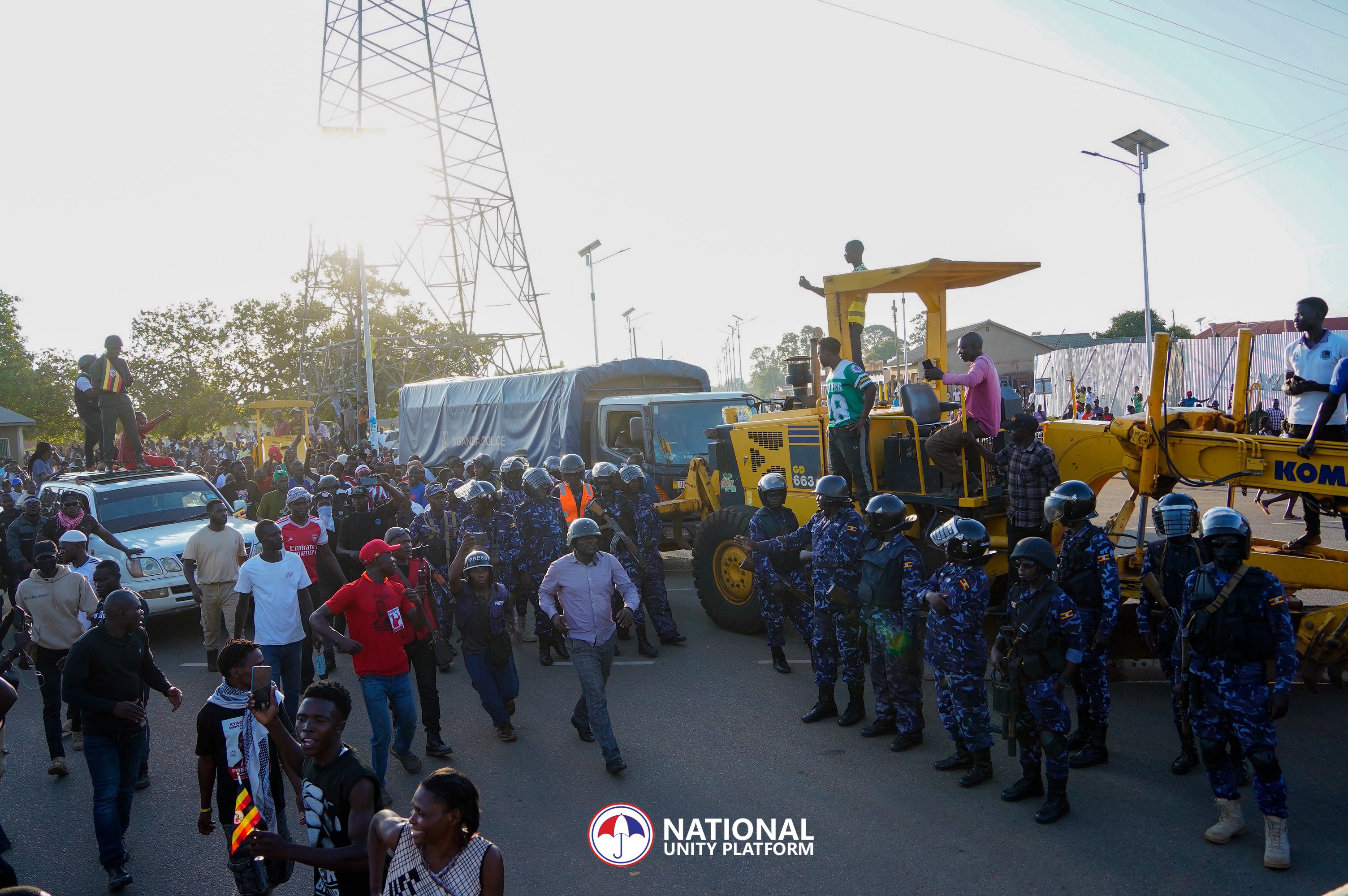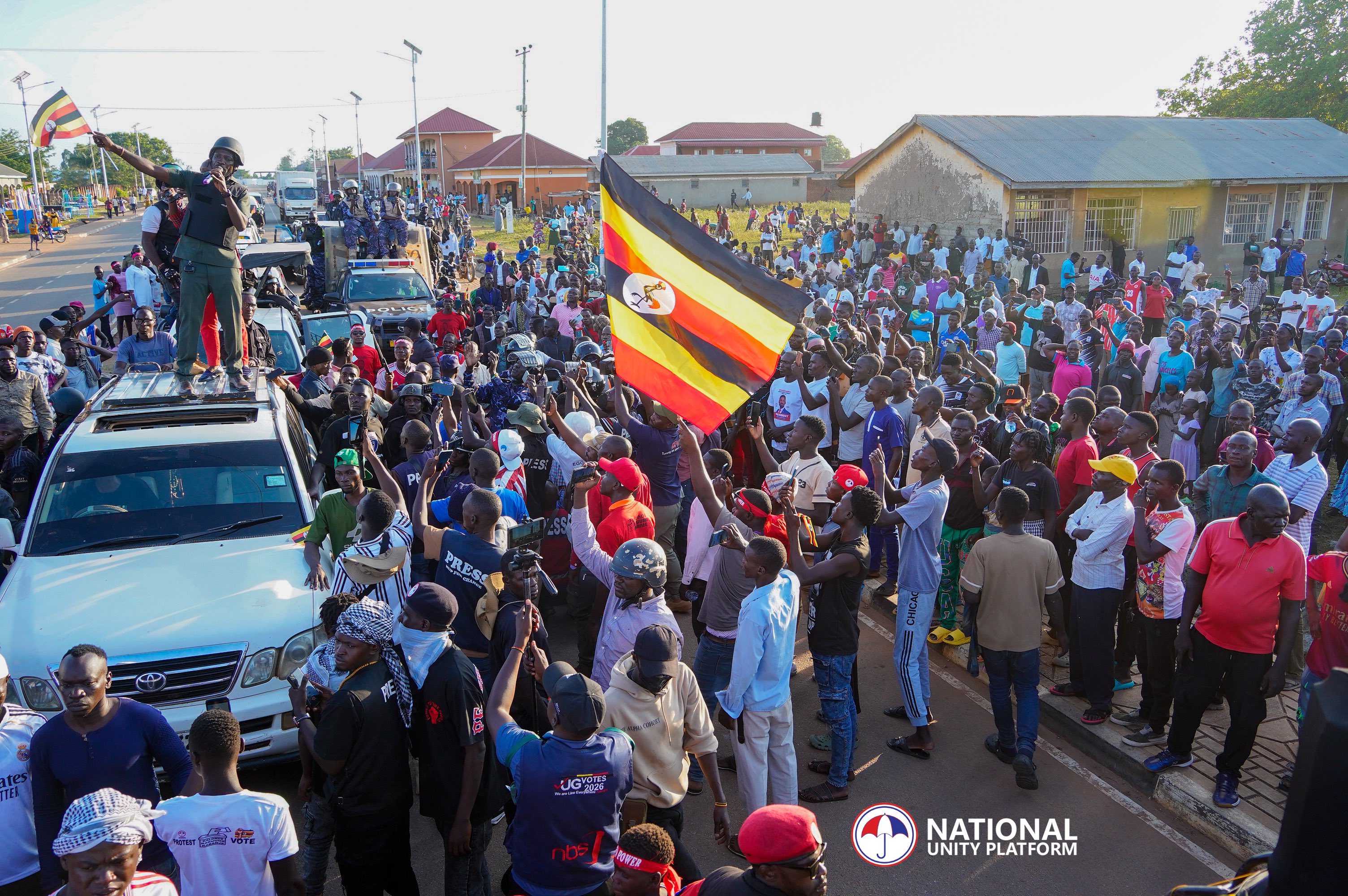 NUP presidential candidate Bobi Wine campaigns in Kumi district as police keep watch from a distance, December 16, 2025 /BOBI WINE/X