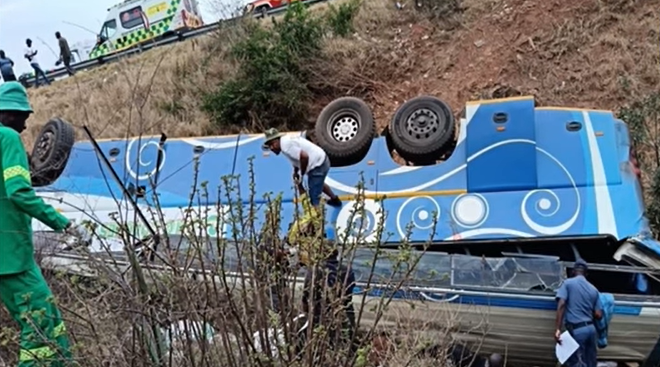The bus, carrying passengers from Zimbabwe, the Democratic Republic of the Congo and Malawi, was traveling from the Eastern Cape Province on Sunday evening when it veered off the road along a steep mountain pass and rolled down an embankment in Limpopo Province.