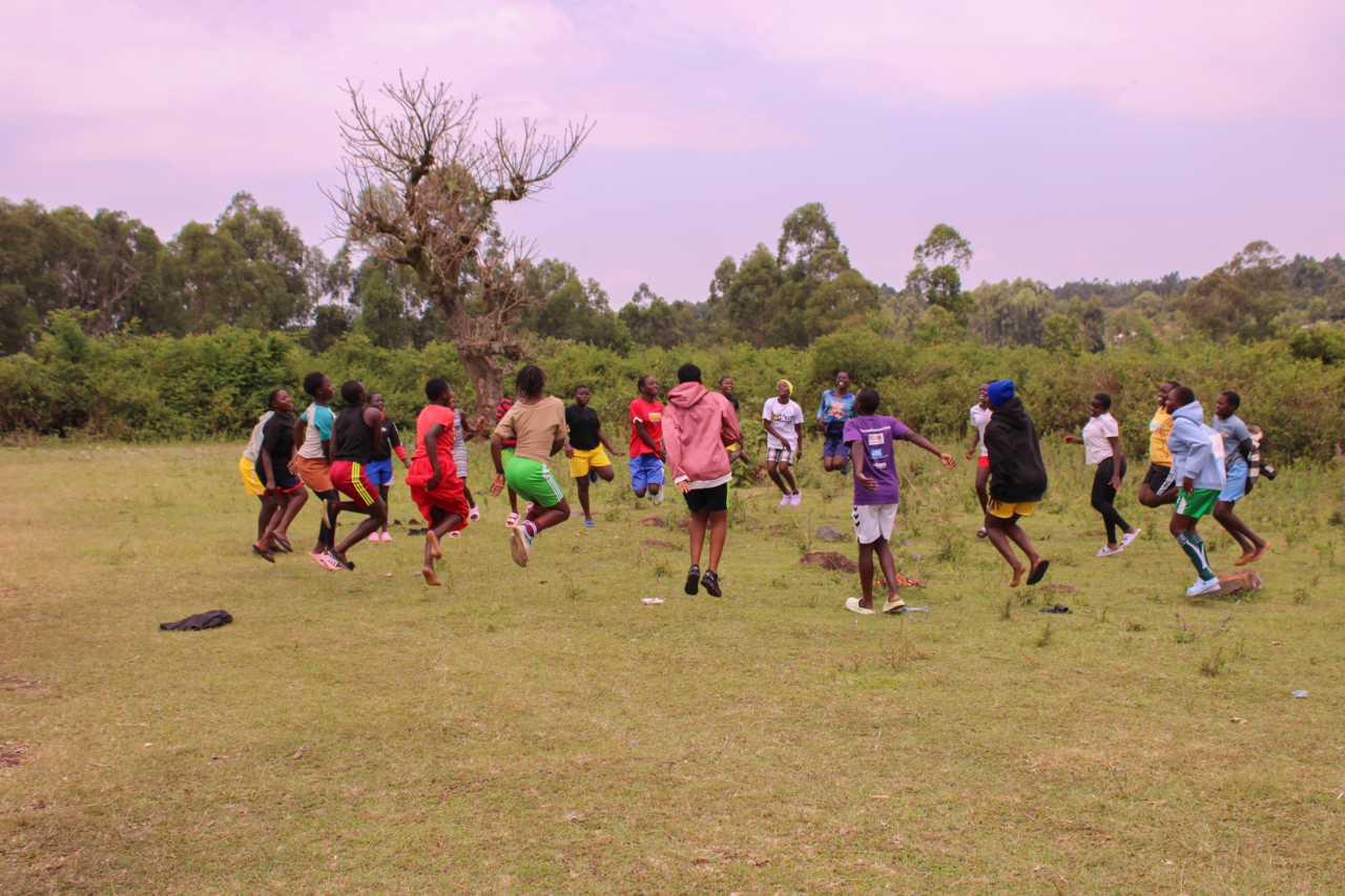 In Marienga Village, the sound of players running across a dusty, dry field fills the hot air.