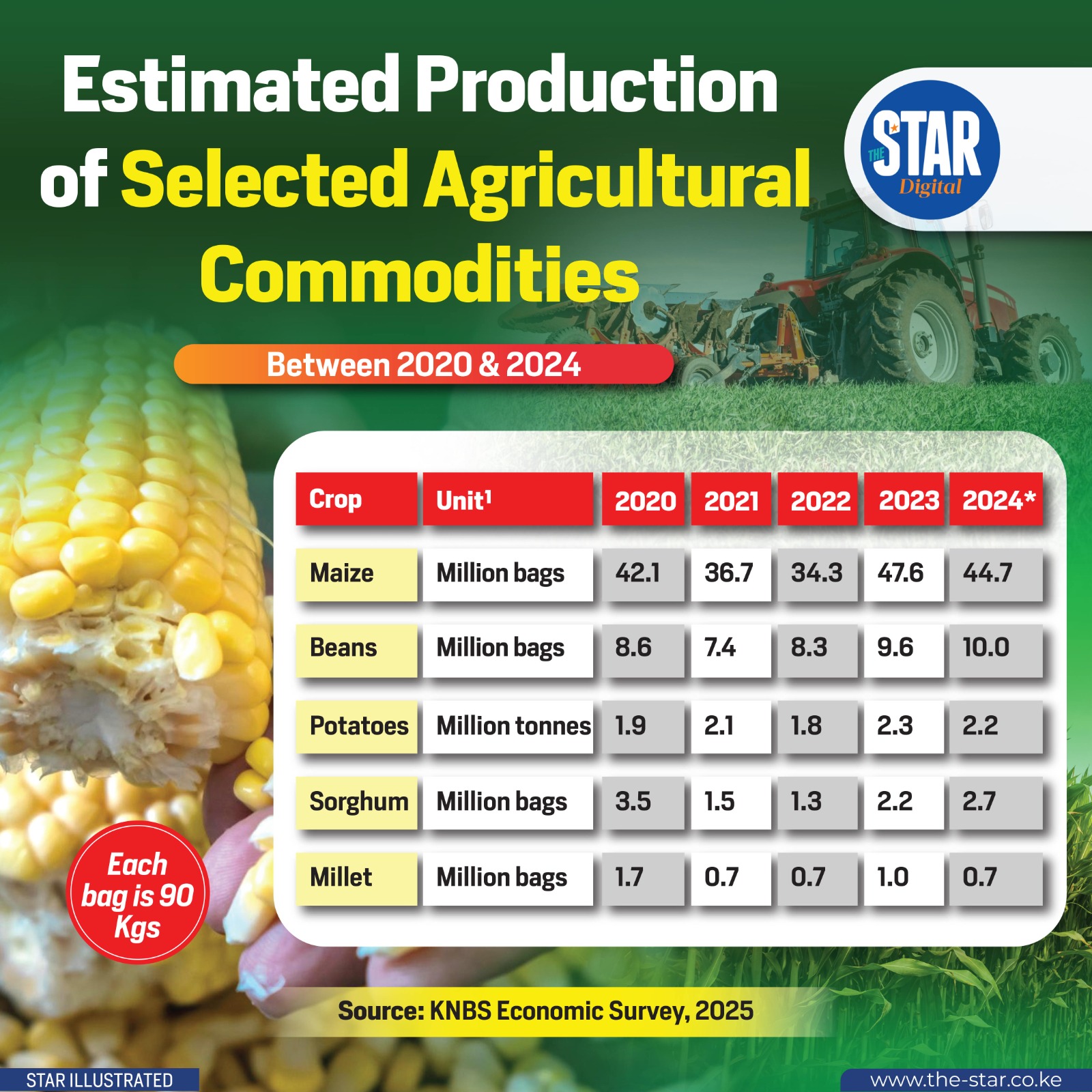 The Kenya National Bureau of Statistics (KNBS) has attributed this to good agricultural practices, conducive weather and government’s support.
