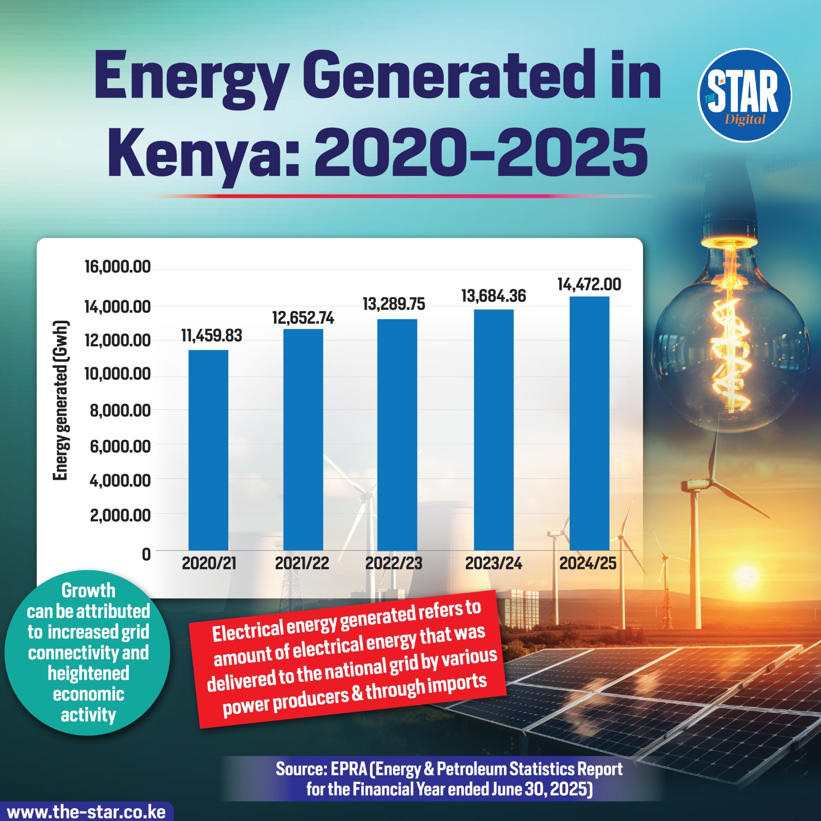 Kenya's energy generation saw consistent and substantial growth over the five-year period from 2020 to 2025.