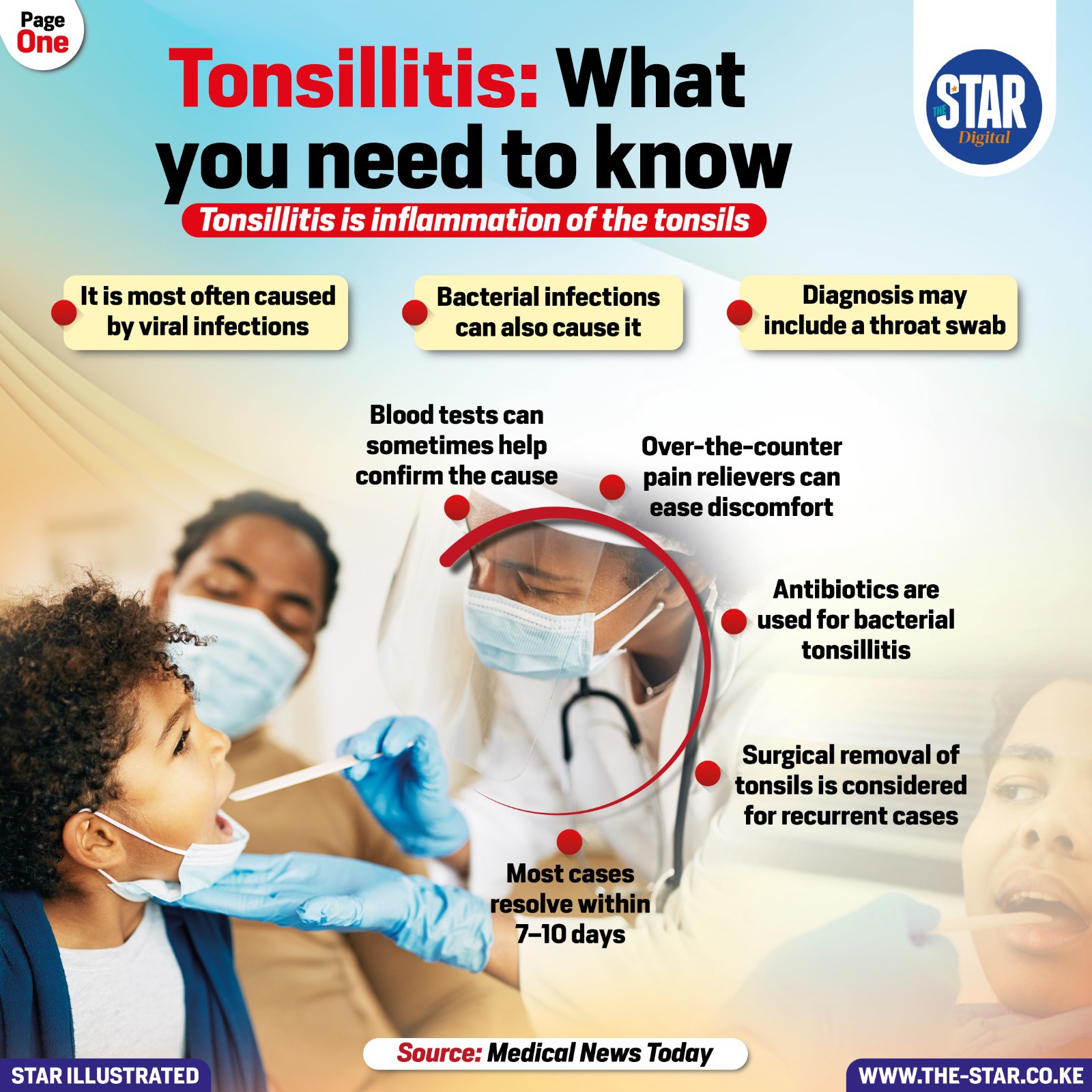Tonsillitis is an inflammation and infection of the tonsils, caused by viruses or bacteria, leading to symptoms like a sore throat, swollen tonsils, fever, difficulty swallowing, and swollen neck glands.