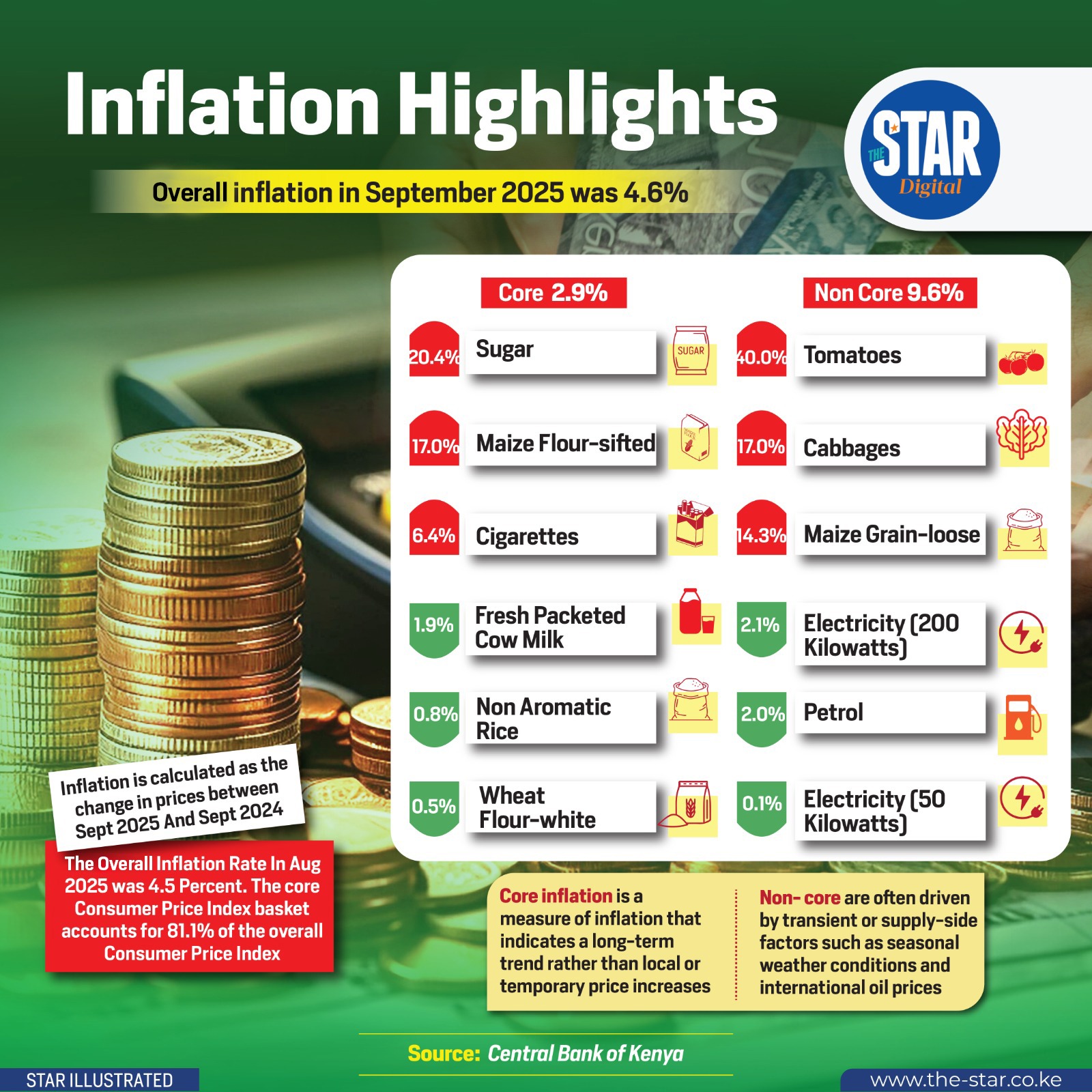 Kenya’s overall inflation rose to 4.6 per cent in September 2025, slightly up from 4.5 per cent recorded in August, according to data from the Central Bank of Kenya.