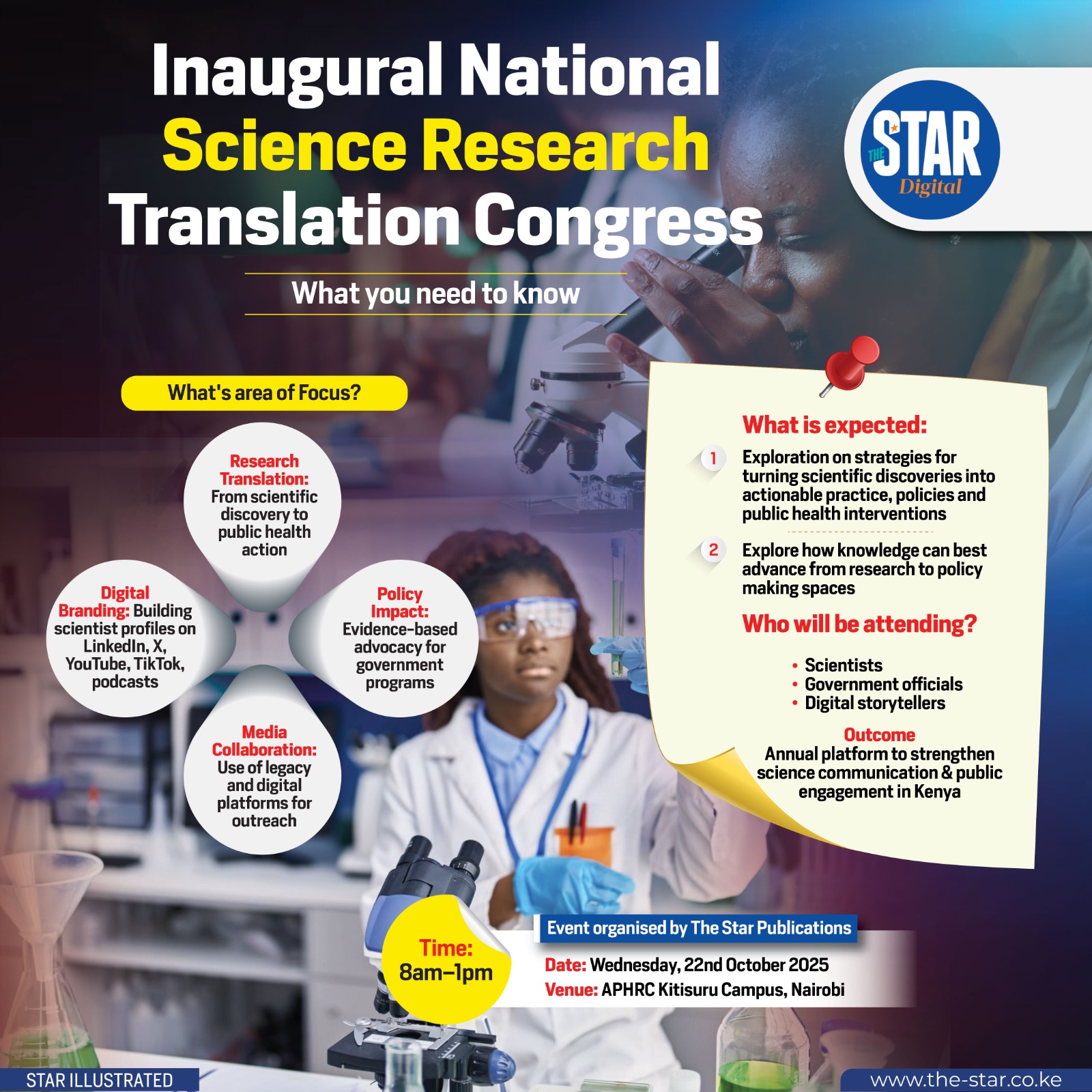 The inaugural National Science Research Translation Congress is set to take place on Wednesday, 22nd October 2025, at the African Population and Health Research Centre (APHRC) in Kitisuru, Nairobi.