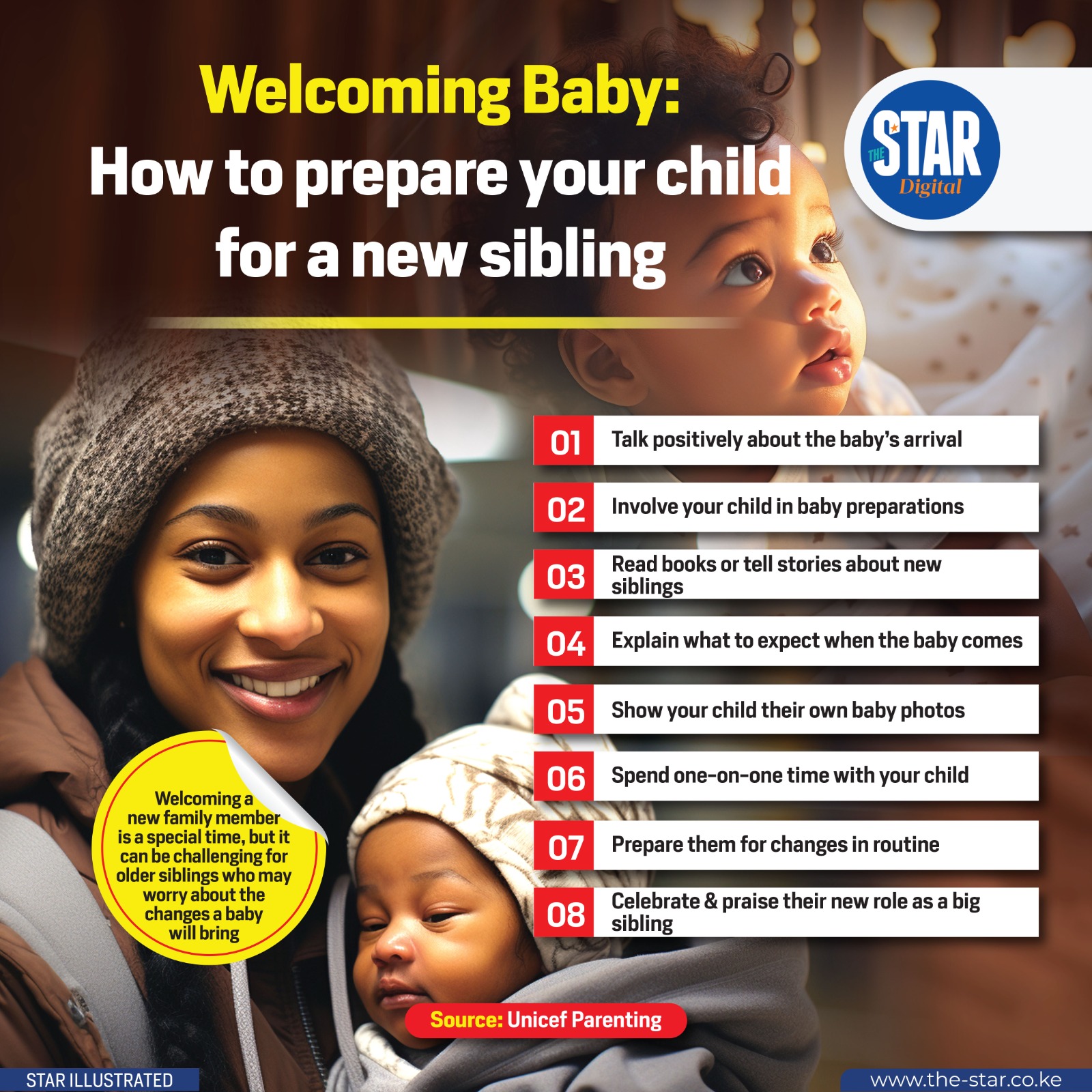 To help your child prepare for and adjust to their new role as a big brother or sister, consider these eight key steps: