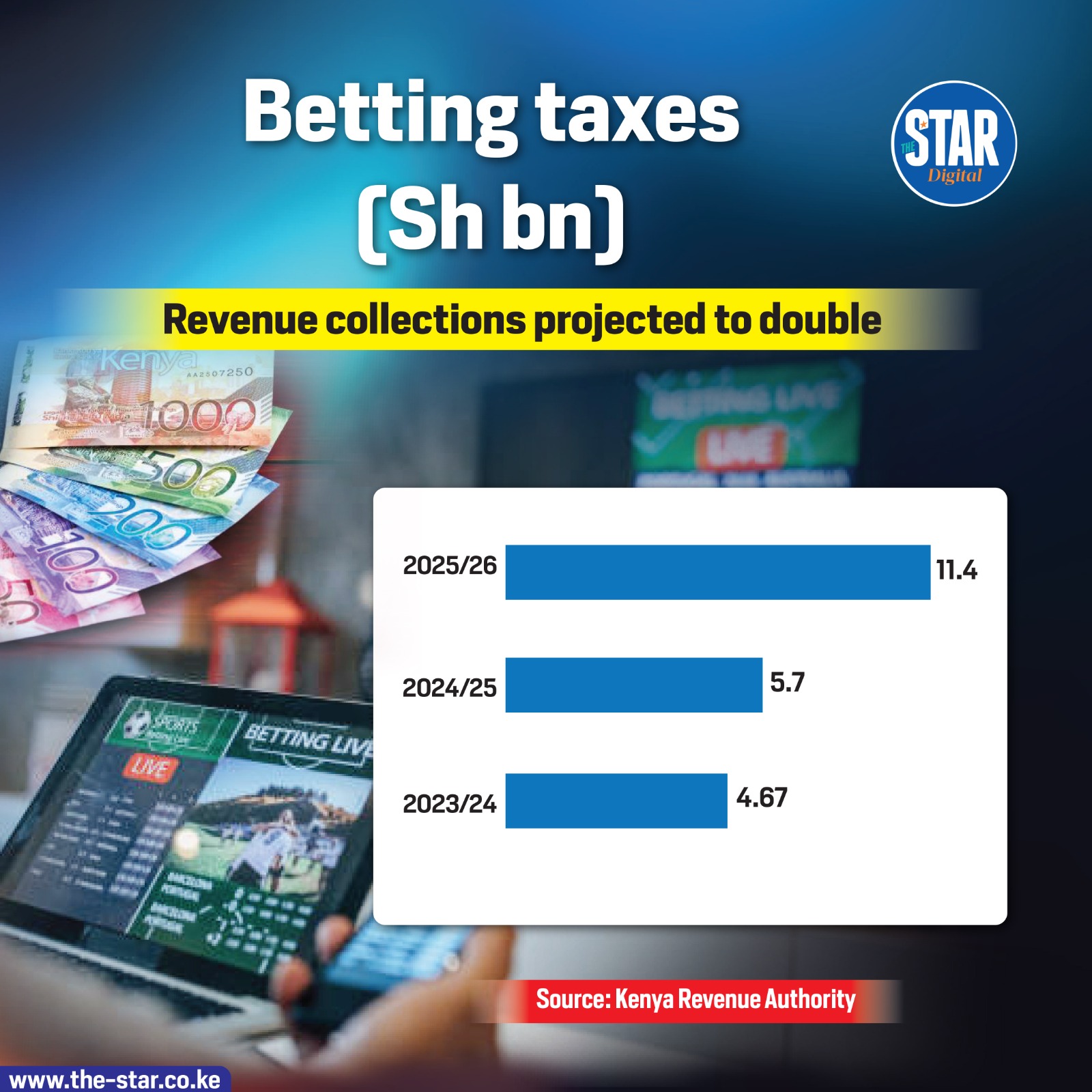 The Kenya Revenue Authority (KRA) reported a sharp increase in revenue from the betting sector during the 2024/2025 financial year. Excise duty on betting services rose to Sh13.233 billion, up from Sh10.598 billion the previous year.