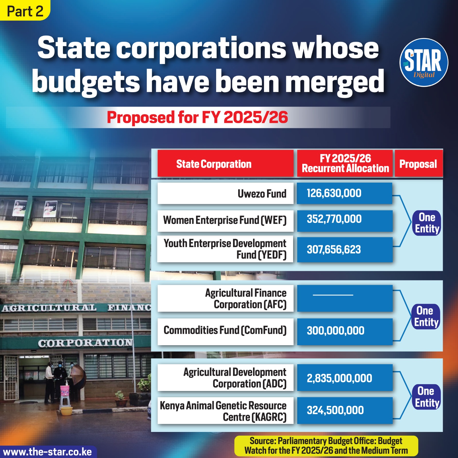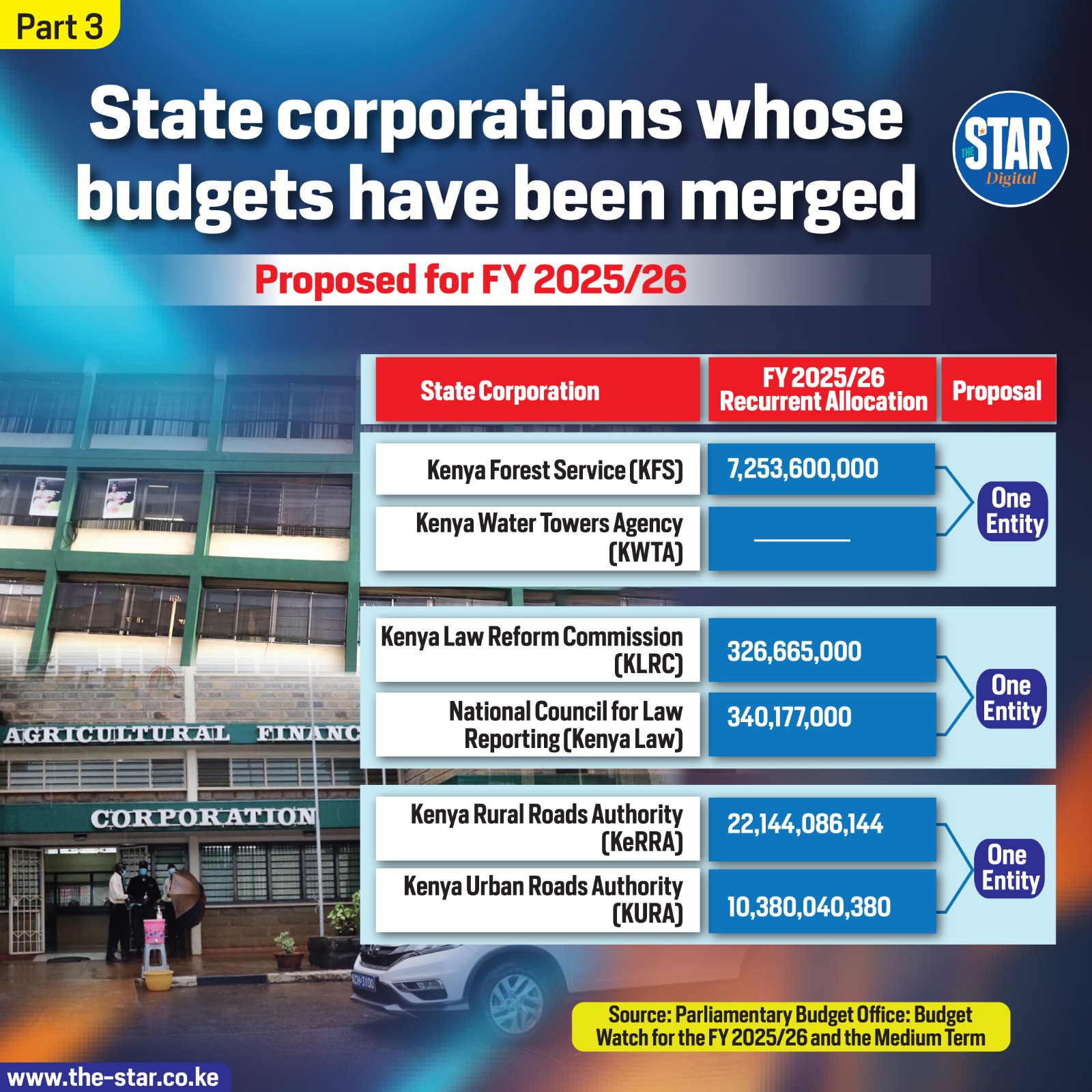 The Kenyan government plans sweeping changes to state corporations in its 2025/26 budget, proposing to merge 42 state corporations into 20 entities.