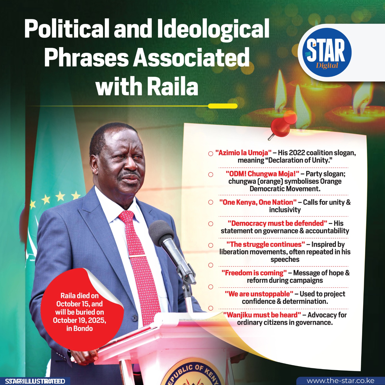 Raila Odinga, a towering figure in Kenyan politics, was synonymous with powerful political and ideological phrases that resonated with millions.