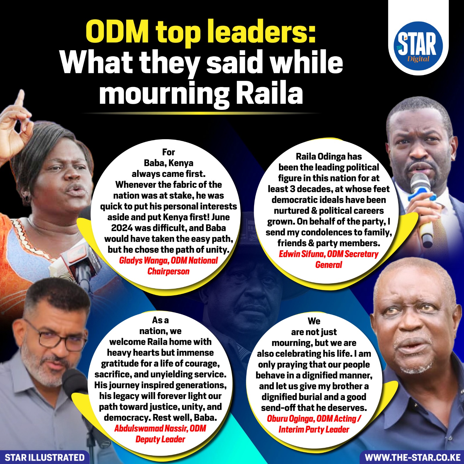 Their tributes capture the profound sense of loss within ODM and the country at large — a recognition that Raila’s voice, both defiant and unifying, reshaped Kenya’s political conscience for generations.