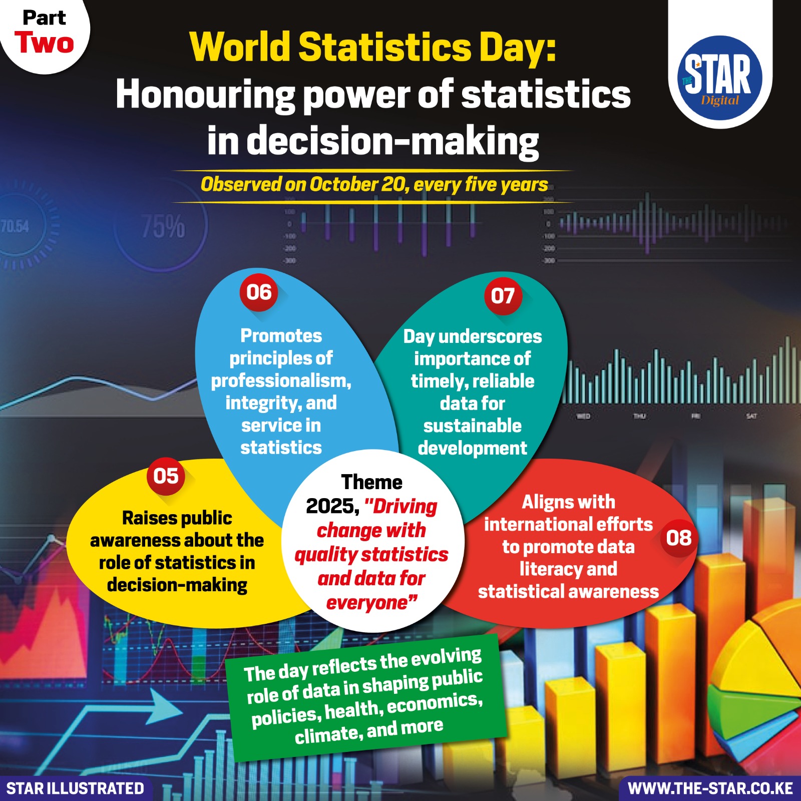 It also promotes global collaboration to enhance data literacy and awareness, ensuring that statistics remain central to advancing health, economics, climate action, and social development worldwide.