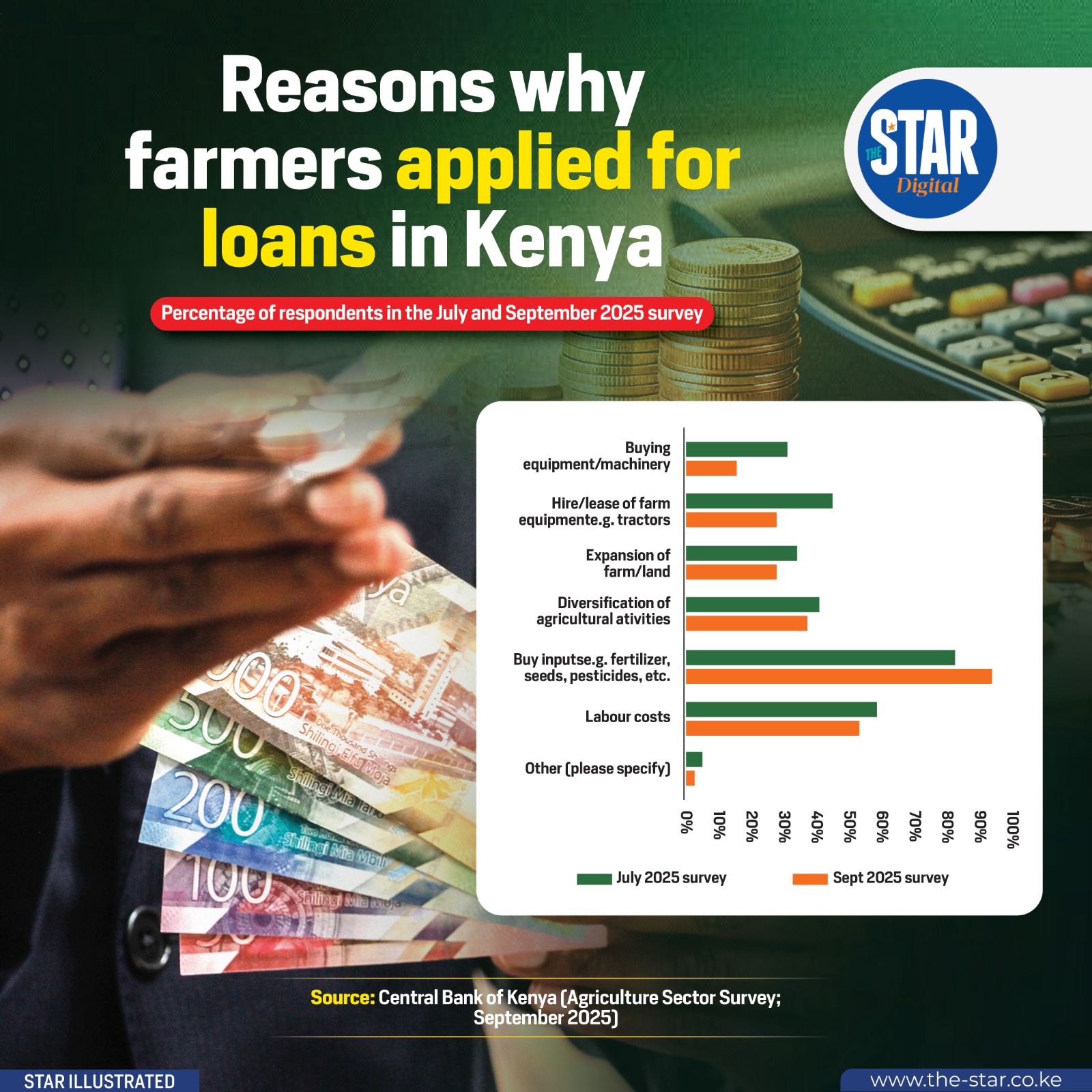Kenyan farmers sought loans primarily to cover the costs of agricultural inputs, according to the Central Bank of Kenya's Agriculture Sector Surveys from July and September 2025.