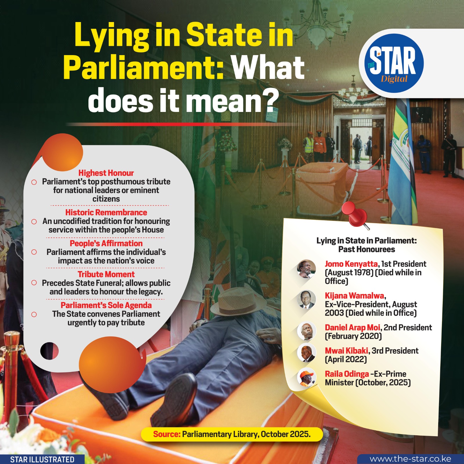 Lying in State in Parliament is the nation’s highest honour, reserved for national leaders or eminent citizens.