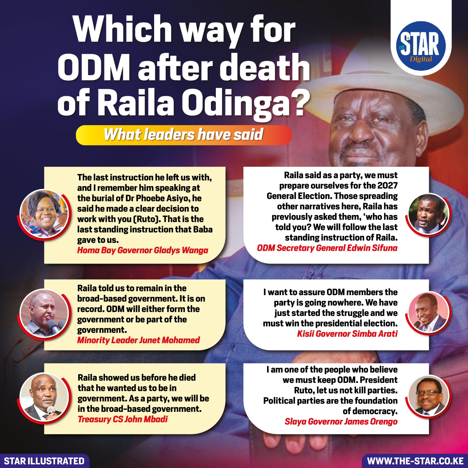 After the death of Raila Odinga, ODM leaders have voiced different views on the party’s direction.