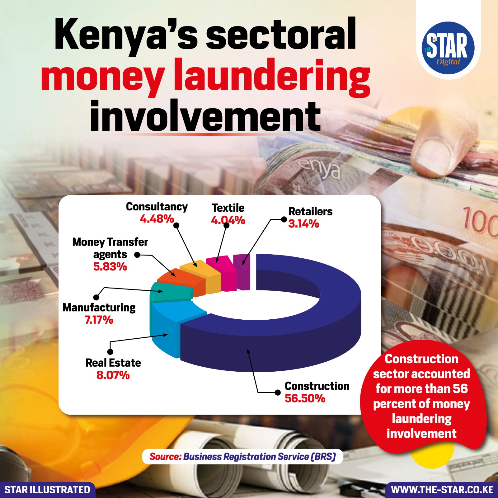 According to data from Kenya's Business Registration Service, the construction sector is the dominant channel for money laundering in the country, accounting for a massive 56.50% of total involvement.