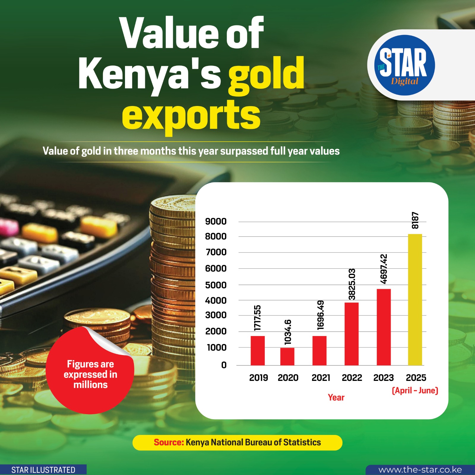 The value of Kenya's gold exports has experienced an extraordinary boom in 2025, with figures from April to June already dwarfing total export values from previous full years.