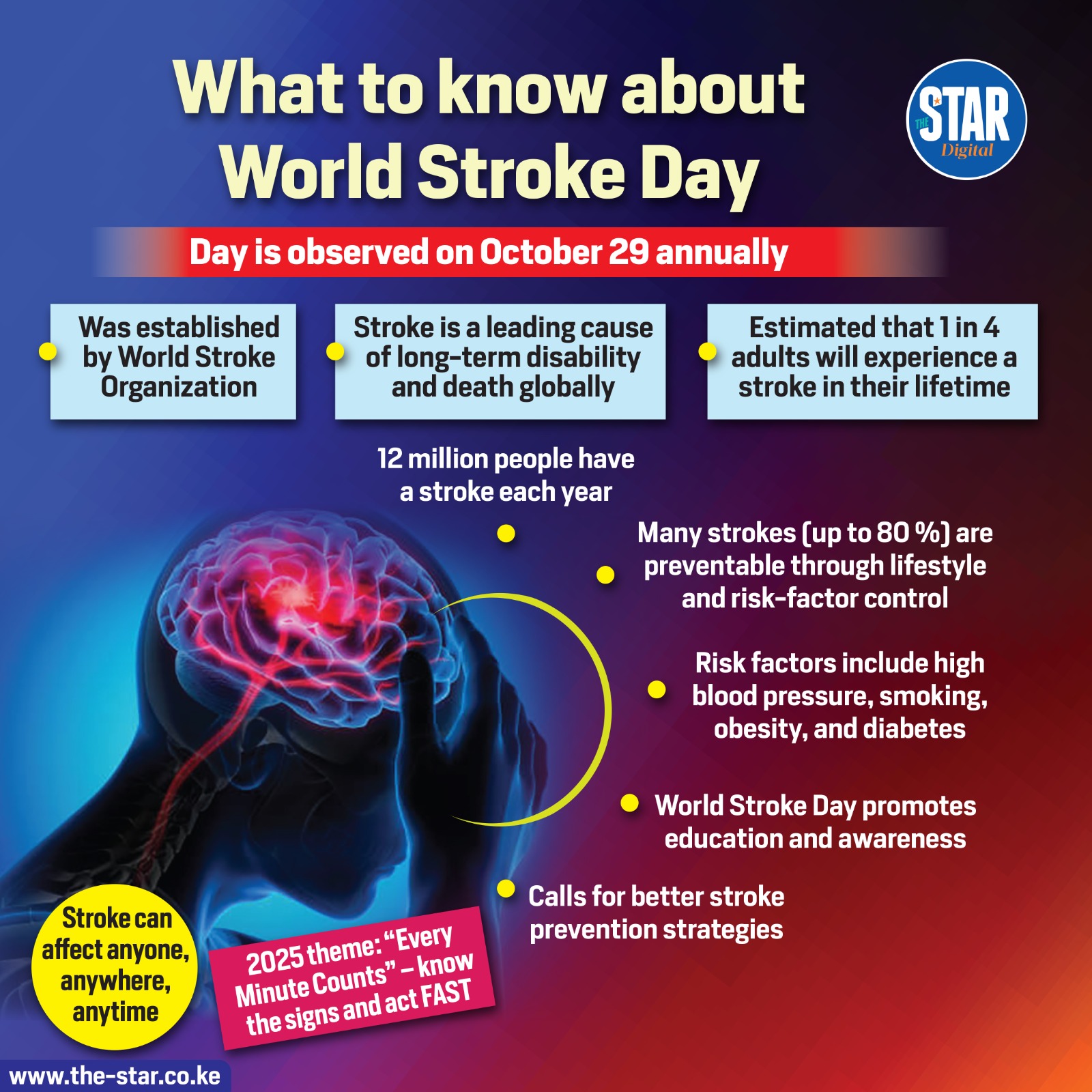 World Stroke Day, established by the World Stroke Organization, is marked every October 29 to raise global awareness about stroke prevention, treatment, and recovery.