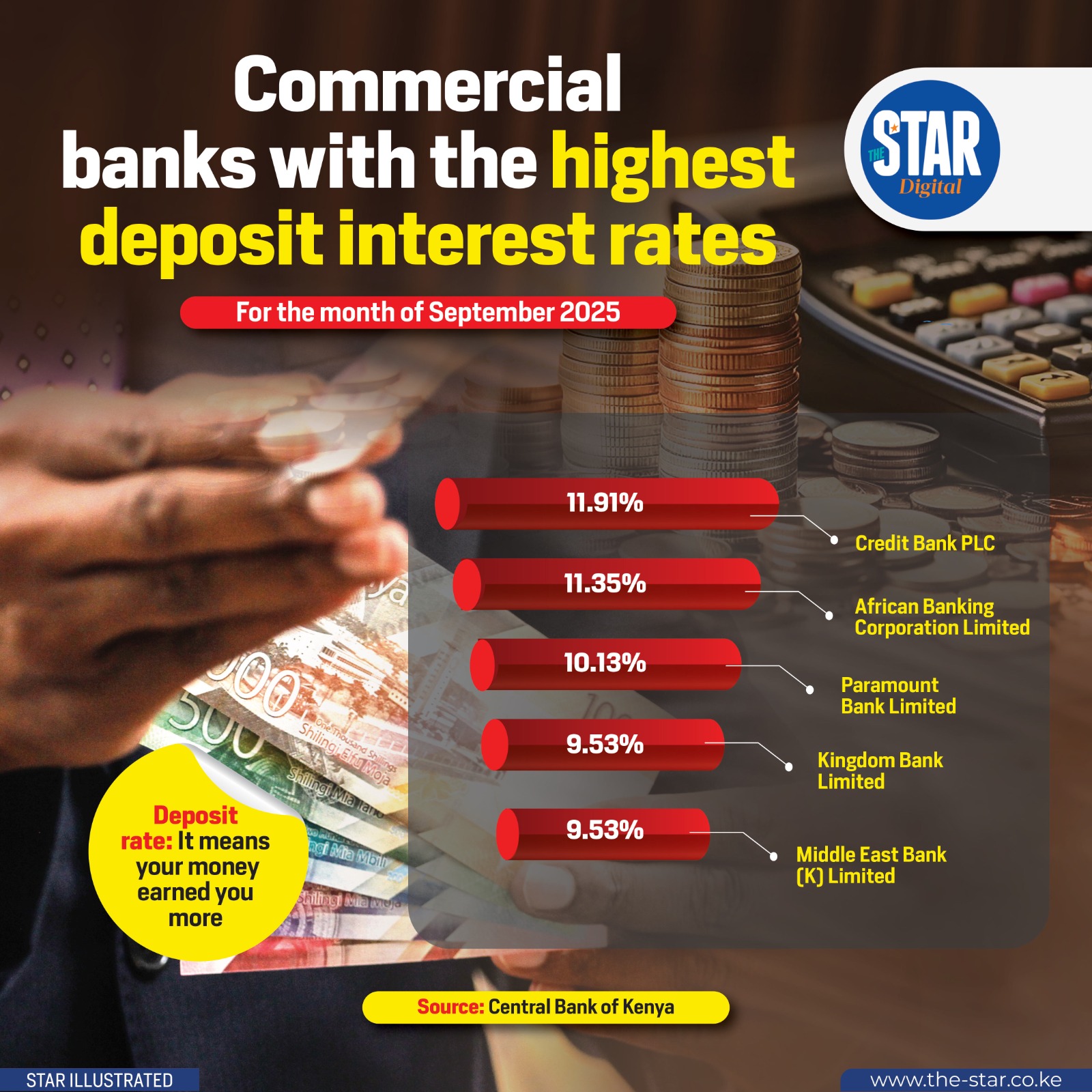 In September 2025, Credit Bank PLC emerged as the commercial bank offering the highest deposit interest rate in Kenya at 11.91%.