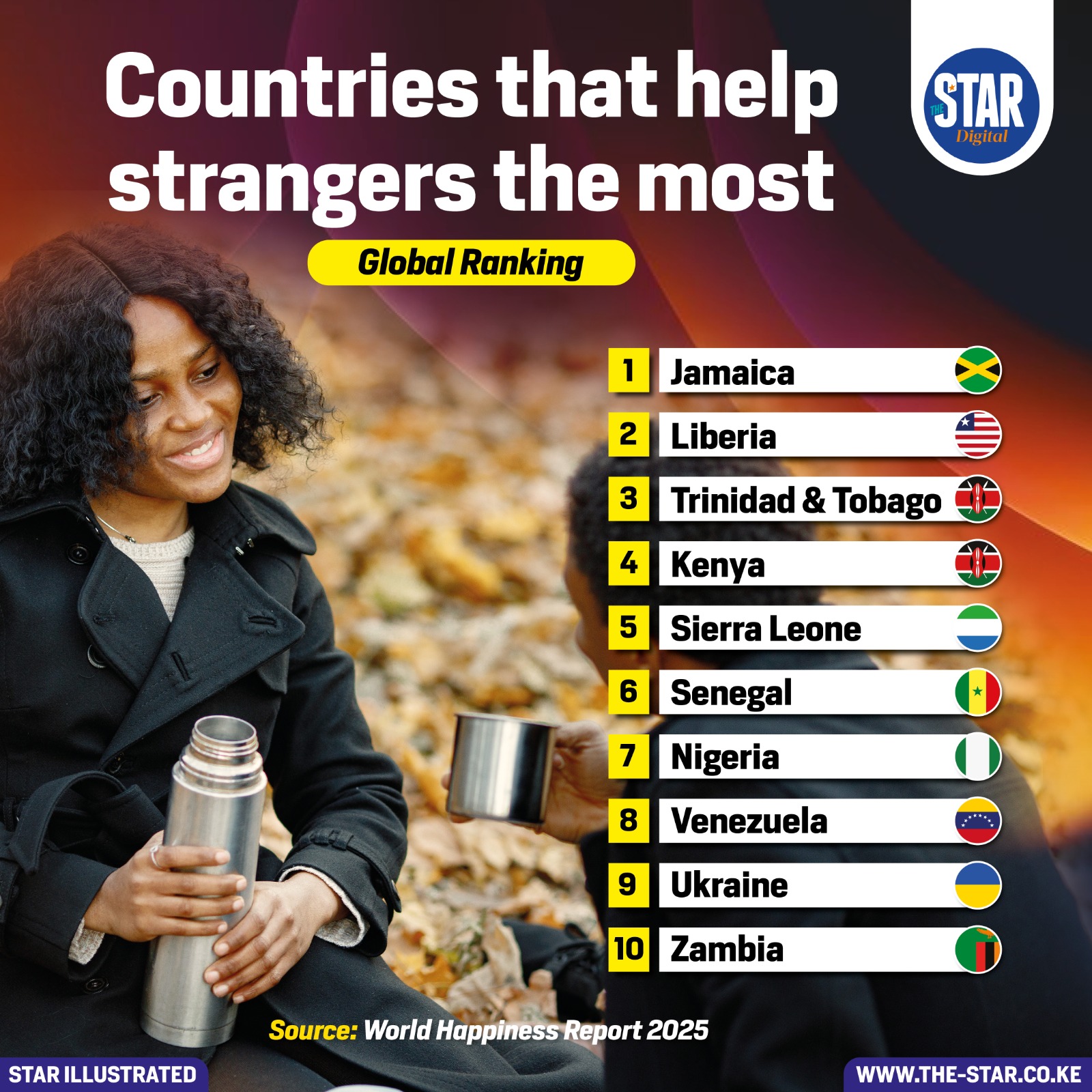 According to the World Happiness Report 2025, Jamaica ranks first globally among countries that help strangers the most.