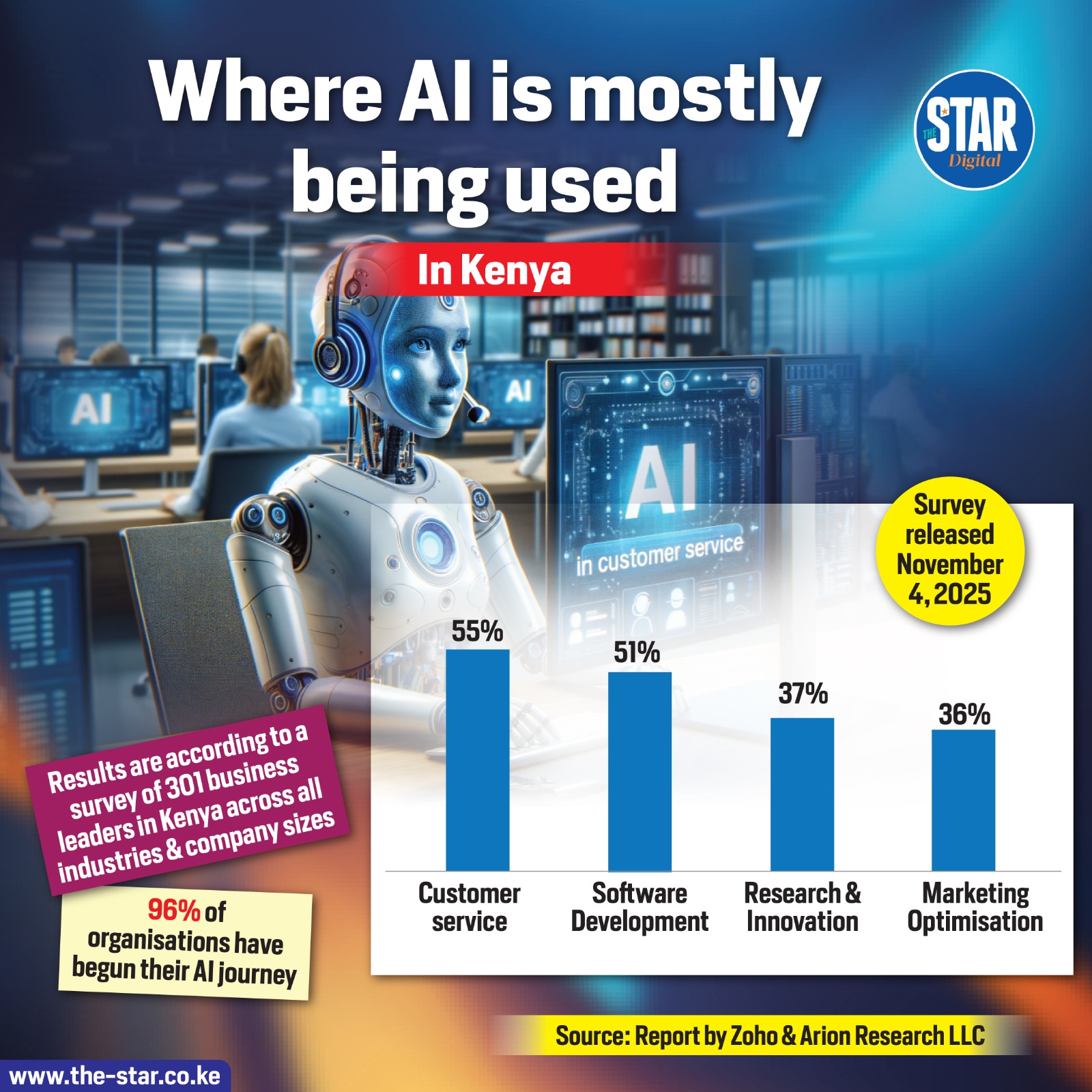 Artificial Intelligence adoption is quickly becoming a norm across Kenya, with a substantial 96% of organizations already initiating their AI journey, according to a survey of 301 business leaders released in November 2025.