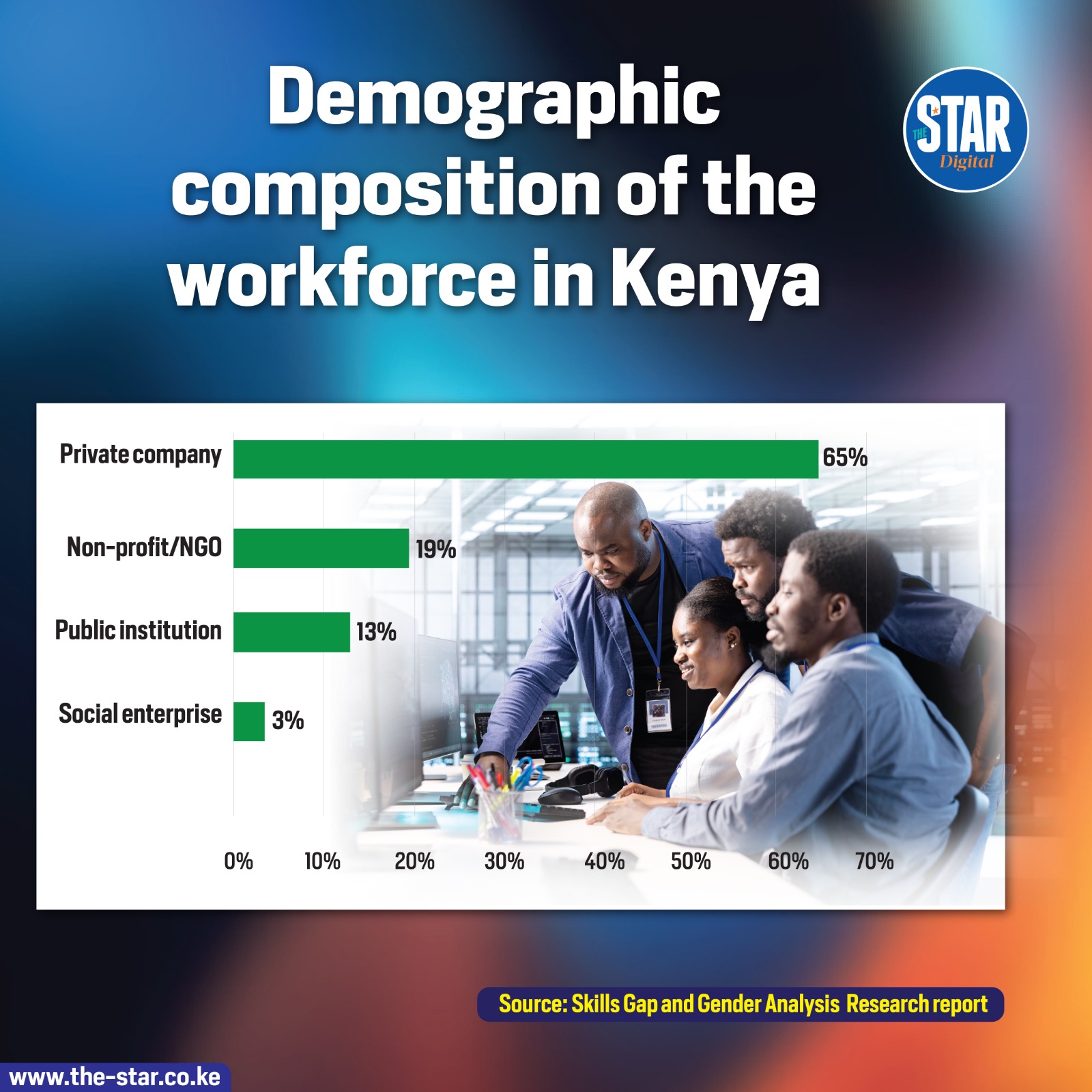 A majority of Kenya’s workforce is employed by private companies, which account for 65% of all jobs, according to the Skills Gap and Gender Analysis Research report.