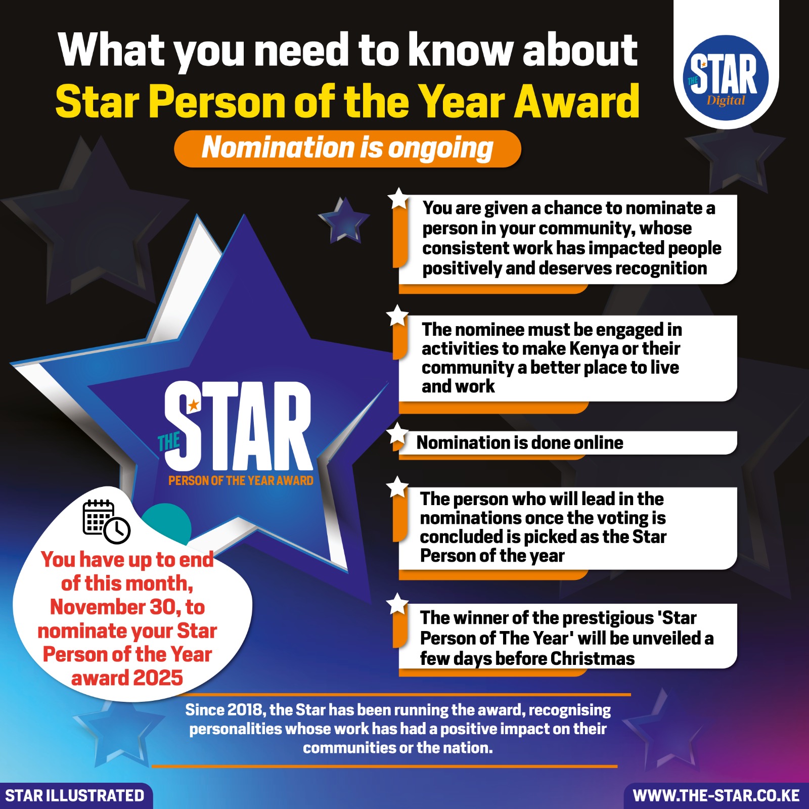 The Star has invited Kenyans to submit nominations for the 2025 Star Person of the Year Award, an annual recognition of individuals making a difference in their communities.