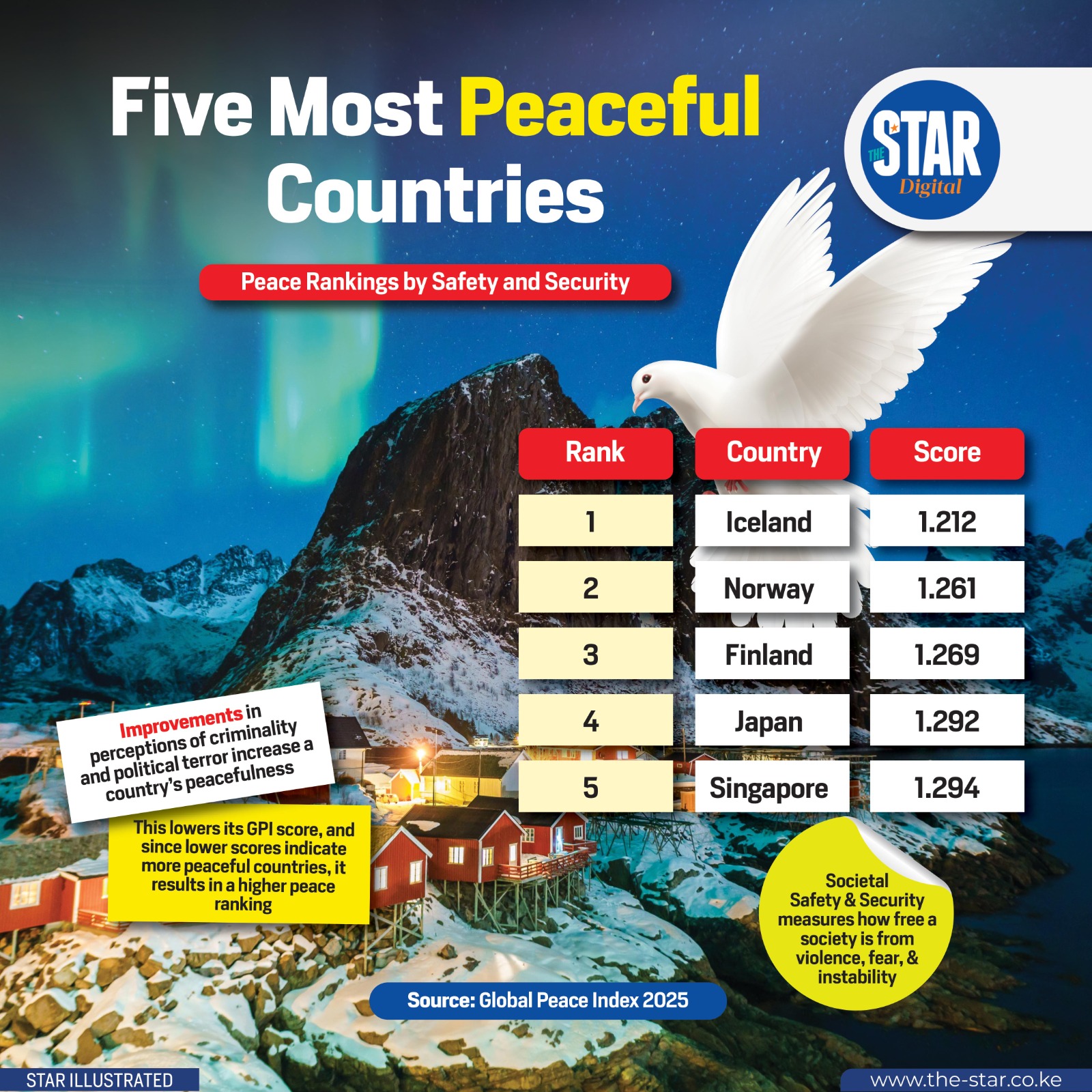The Global Peace Index (GPI) 2025 ranks Iceland as the world's most peaceful country, boasting a score of 1.212. This ranking is determined by Safety and Security metrics, where lower scores indicate a more peaceful society.