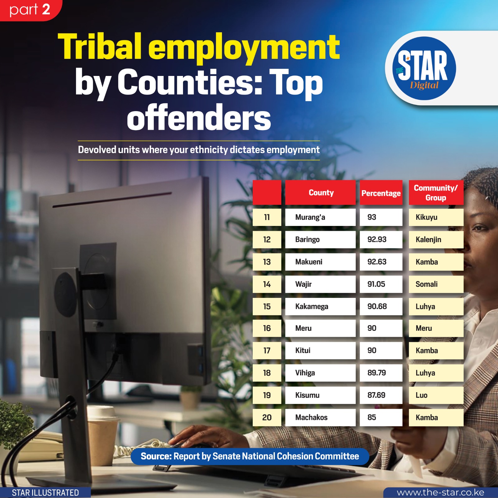 Such patterns are documented by the Senate National Cohesion Committee, which monitors diversity in devolved units. The statistics offer insight into hiring practices and demographic distribution across regions.