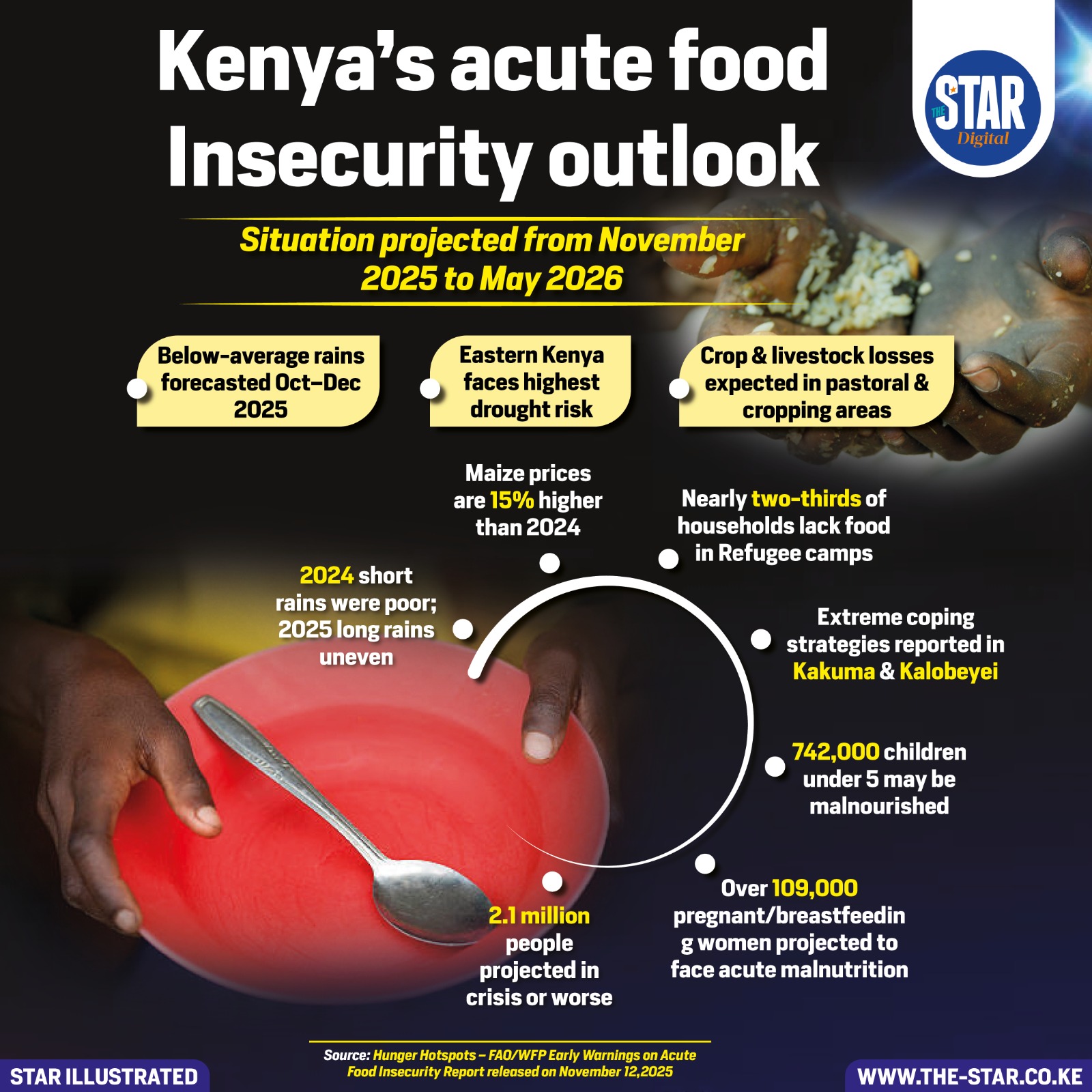 Maize prices are 15 per cent higher than in 2024, following poor short rains in 2024 and uneven long rains in 2025.