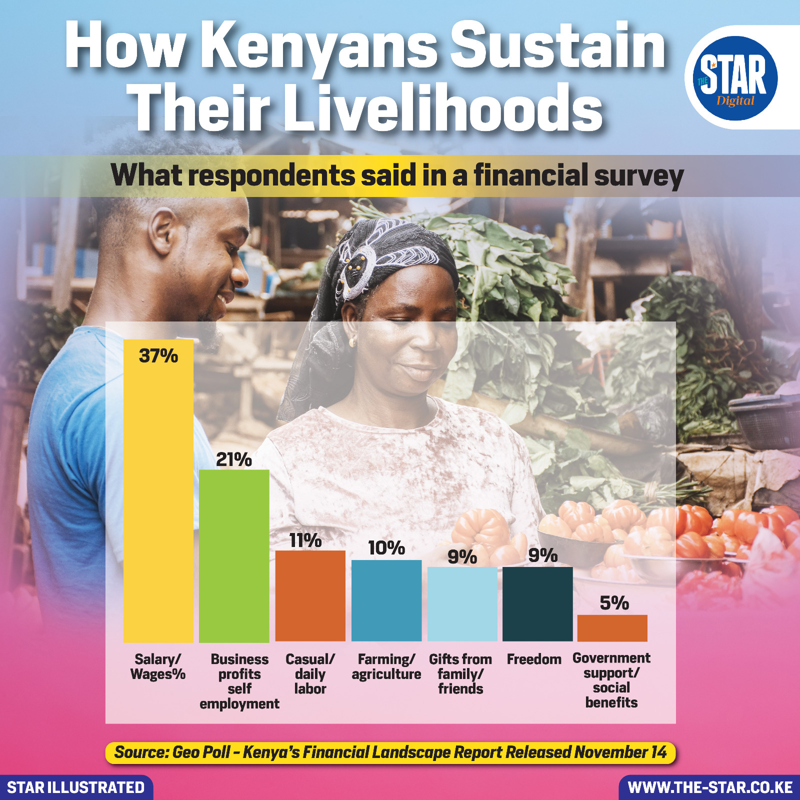 A new financial survey highlights how Kenyans sustain their livelihoods, revealing a diverse mix of income sources across the country.