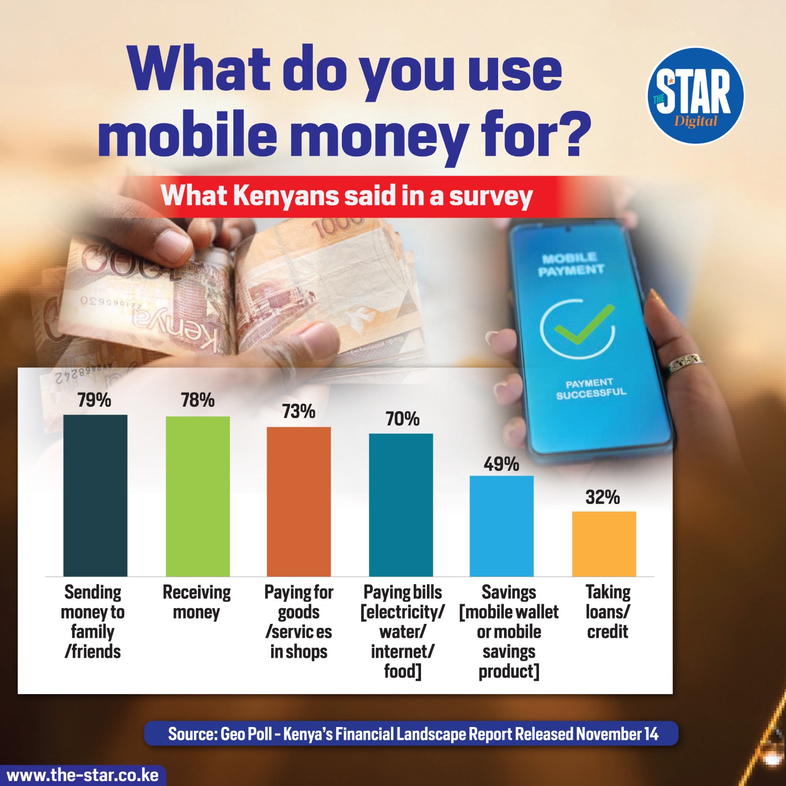 According to a GeoPoll - Kenya’s Financial Landscape Report, the most common uses include sending money (79%) and receiving money (78%), confirming its relevance in peer-to-peer transactions.