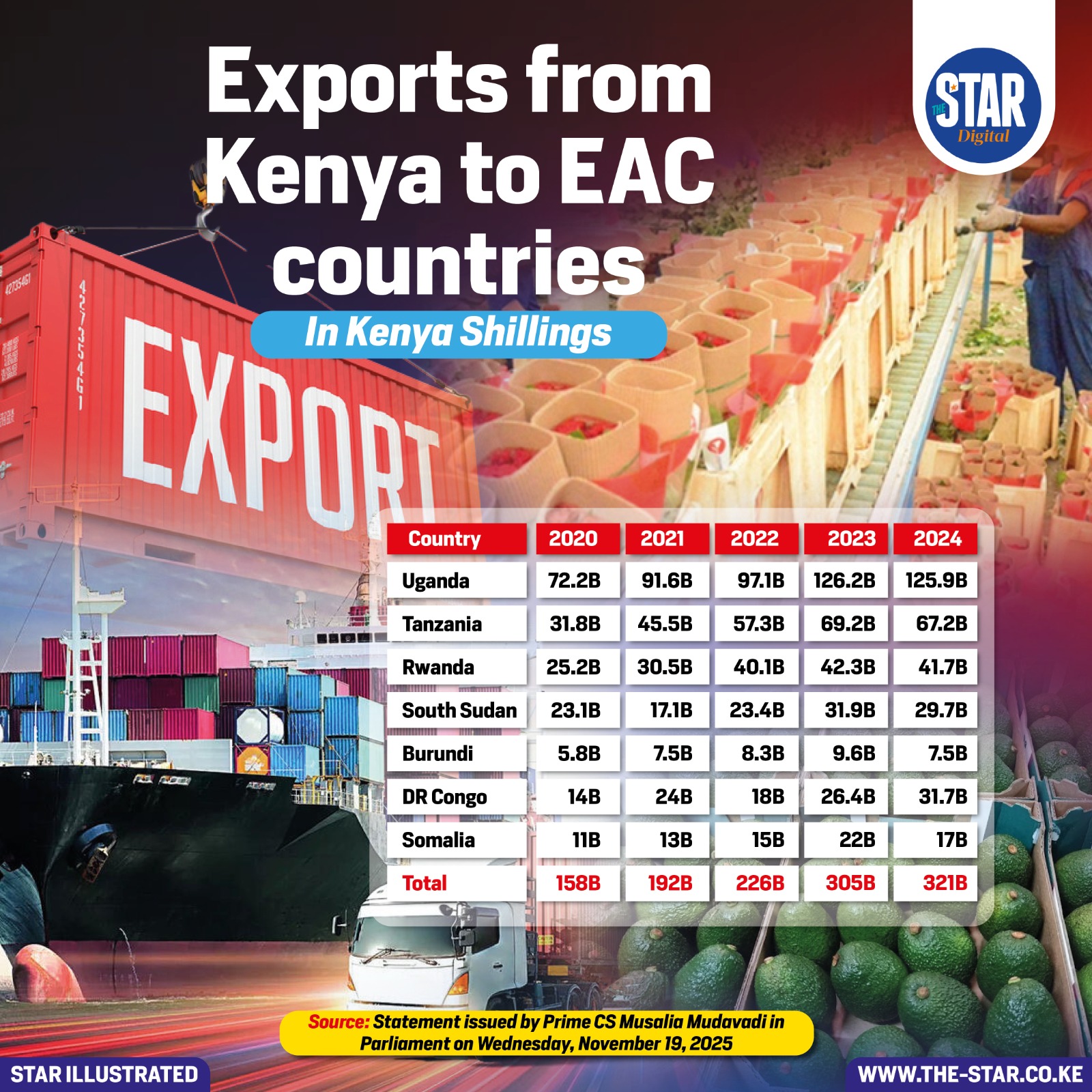 Kenya’s exports to East African Community (EAC) countries rose steadily from 2020 to 2024, reaching Sh321 billion in 2024.